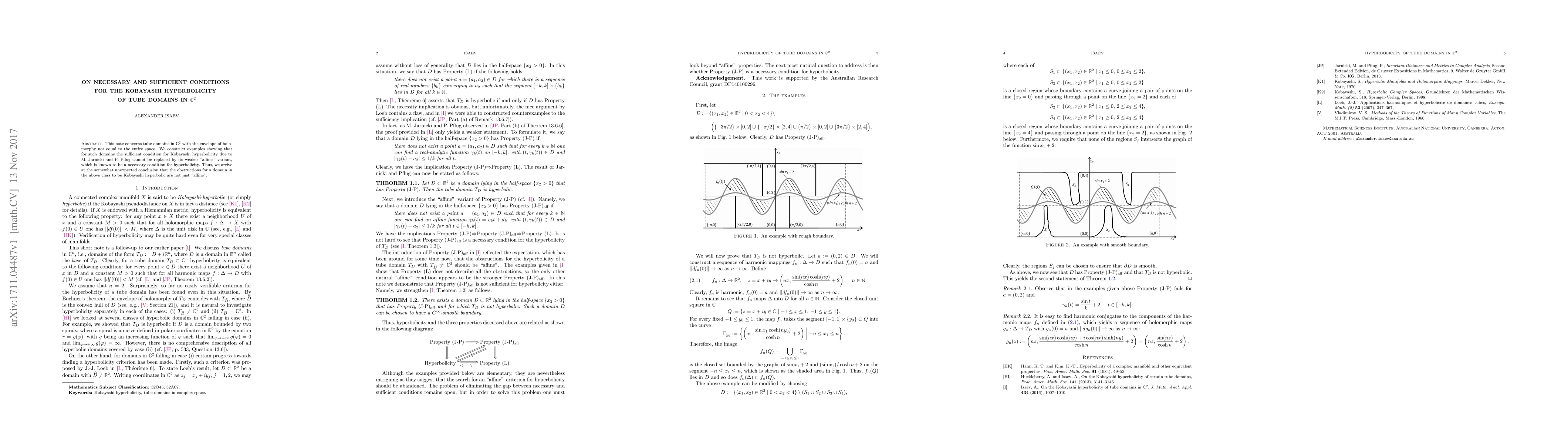 This paper examines tube domains in ${\mathbb C}^2$ where the envelope of holomorphy is not the entire space, demonstrating that the sufficient condition for Kobayashi hyperbolicity by Jarnicki and Pflug cannot be replaced by its weaker "affine" variant, revealing non-affine obstructions to hyperbolicity.