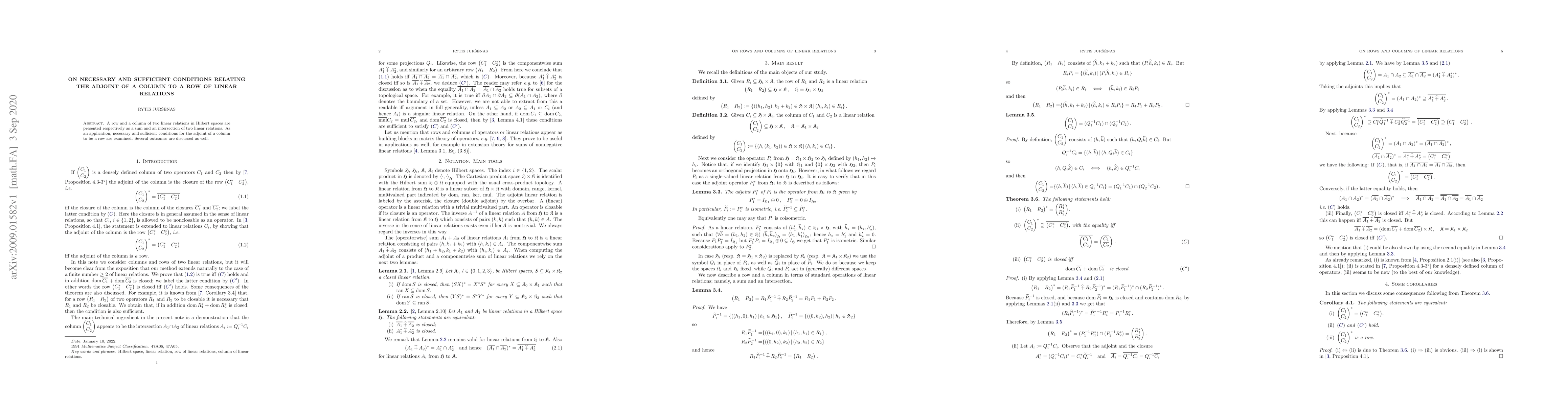 A row and a column of two linear relations in Hilbert spaces are presented respectively as a sum and an intersection of two linear relations. As an application, necessary and sufficient conditions for the adjoint of a column to be a row are examined. Several outcomes are discussed as well.