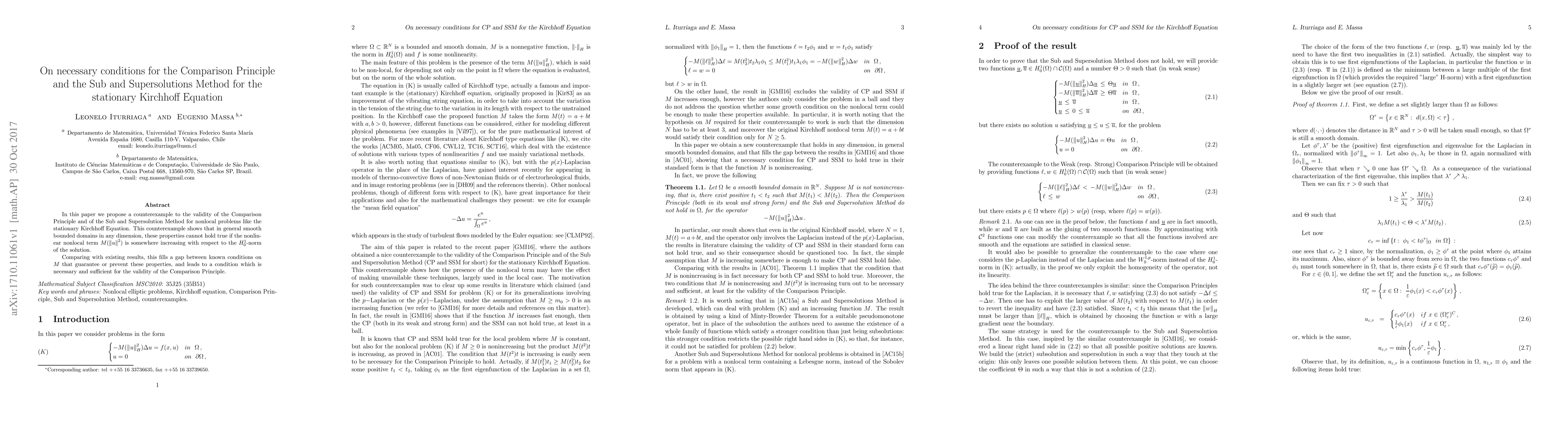 In this paper we propose a counterexample to the validity of the Comparison Principle and of the Sub and Supersolution Method for nonlocal problems like the stationary Kirchhoff Equation. This counterexample shows that in general smooth bounded domains in any dimension, these properties cannot hold true if the nonlinear nonlocal term $M(\|u\|^2)$ is somewhere increasing with respect to the $H_0^1$-norm of the solution. Comparing with existing results, this fills a gap between known conditions on $M$ that guarantee or prevent these properties, and leads to a condition which is necessary and sufficient for the validity of the Comparison Principle.