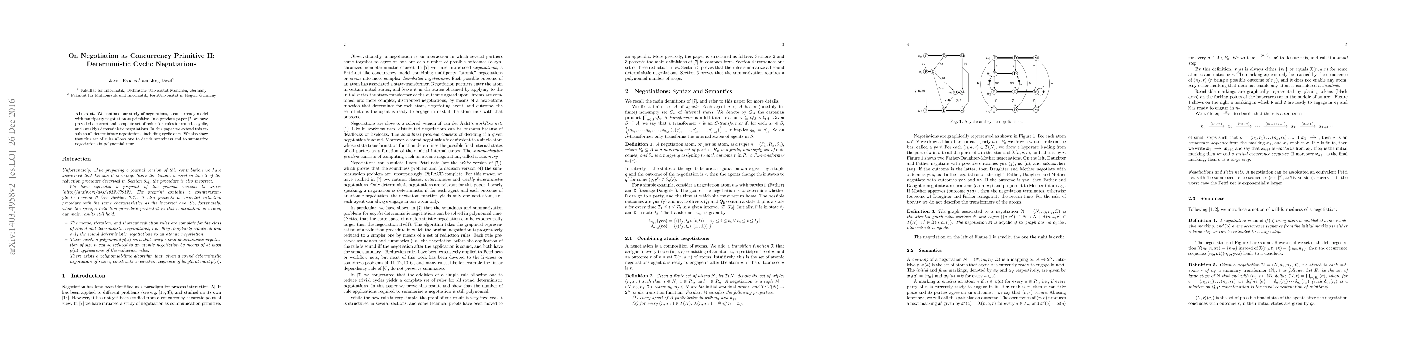 We continue our study of negotations, a concurrency model with multiparty negotiation as primitive. In a previous paper (arXiv:13072145) we have provided a correct and complete set of reduction rules for sound, acyclic, and (weakly) deterministic negotiations. In this paper we extend this result to all deterministic negotiations, including cyclic ones. We also show that this set of rules allows one to decide soundness and to summarize negotiations in polynomial time.
