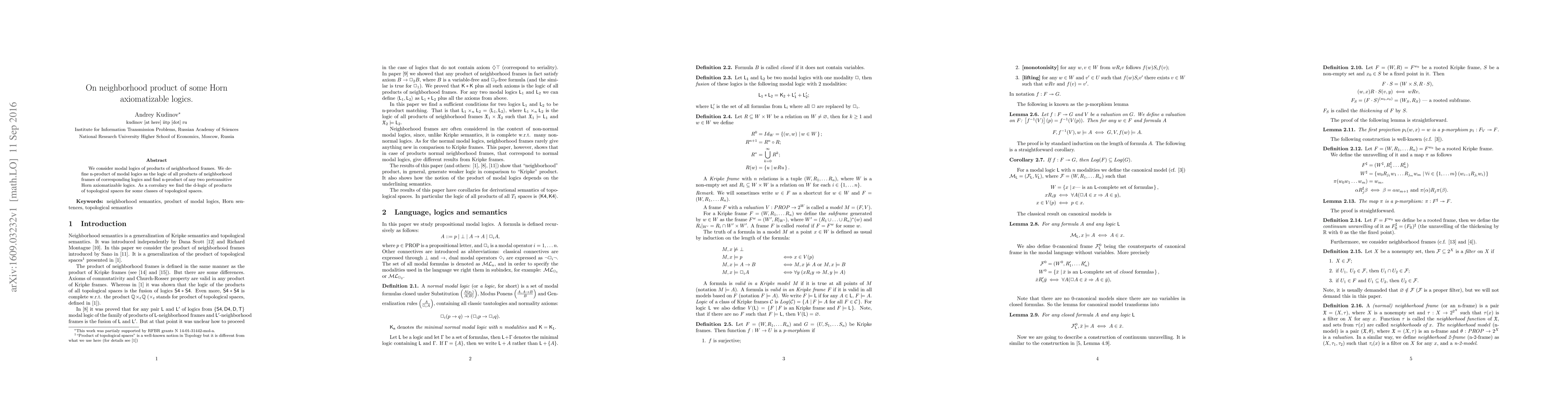 This paper investigates the neighborhood product of pretransitive Horn axiomatizable logics and finds the n-product of any two such logics. As a corollary, it determines the d-logic of products of topological spaces for specific classes.