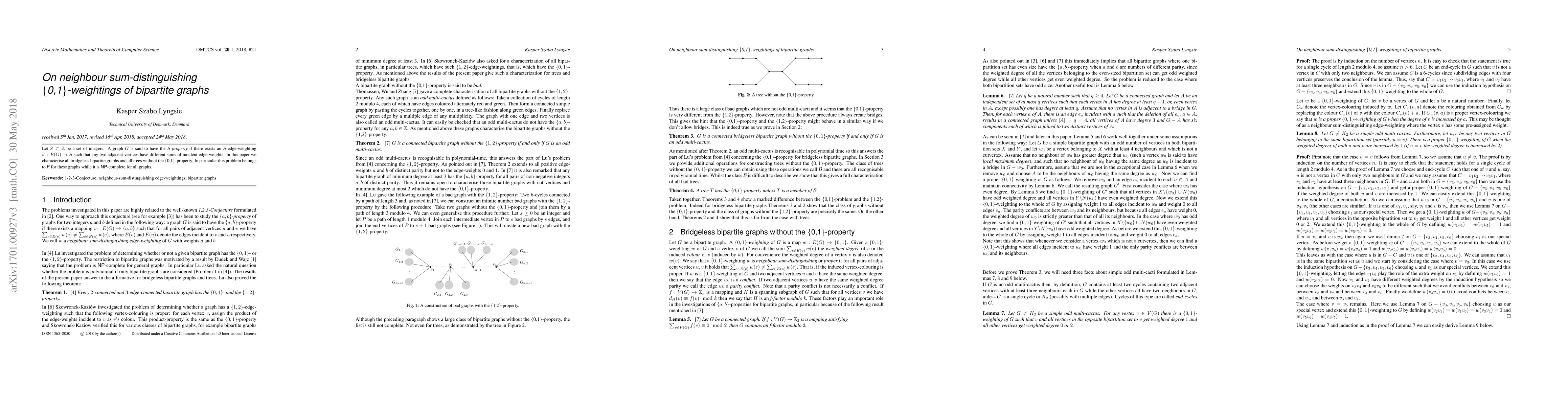 This paper characterizes bridgeless bipartite graphs and trees without the $\{0,1\}$-property, showing that determining such edge-weightings is in P for these specific graphs but NP-complete for general graphs.