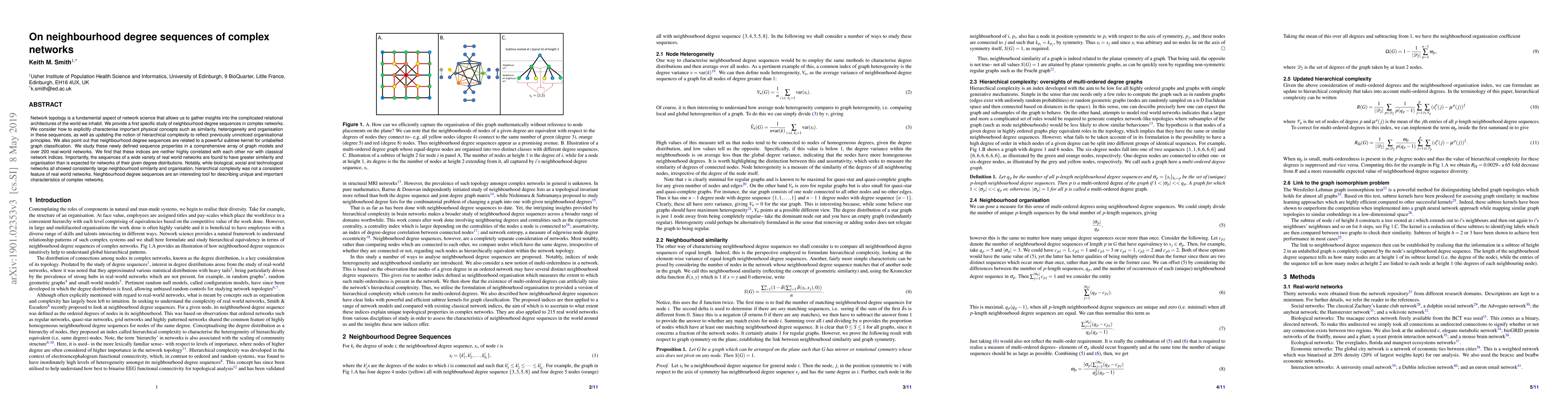 This paper investigates neighbourhood degree sequences in complex networks to characterize concepts like similarity, heterogeneity, and organisation. It finds that these sequences reveal unique network properties, showing greater similarity and organisation than expected, though hierarchical complexity varies across different real-world networks.