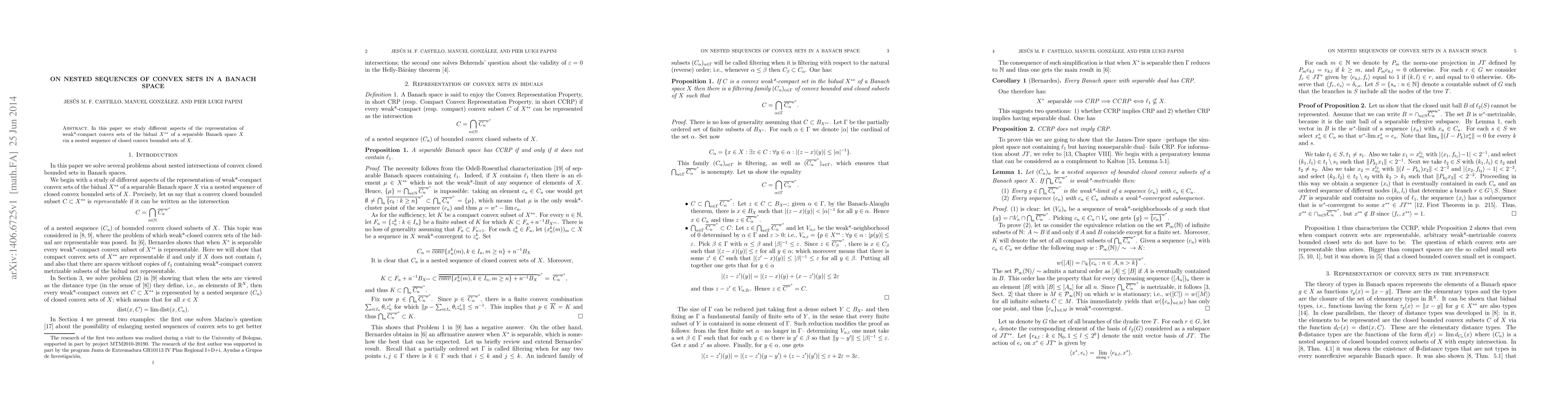 Summary: This paper investigates the representation of weak*-compact convex sets in the bidual of a separable Banach space through nested sequences of closed convex bounded sets in the original Banach space. The focus is on understanding the structural properties and implications of such representations.