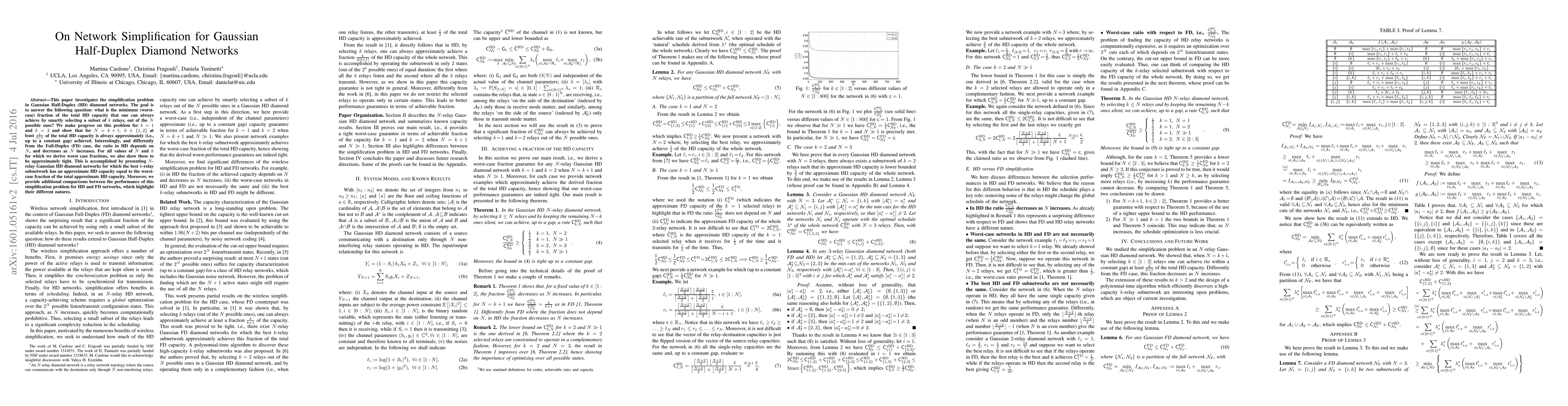 This paper explores the simplification of Gaussian Half-Duplex (HD) diamond networks by selecting subsets of relays to achieve a fraction of the total HD capacity. It demonstrates that for $k=1$ and $k=2$, at least $\frac{k}{k+1}$ of the total HD capacity can be achieved, with the ratio decreasing as the number of relays increases, contrasting with Full-Duplex (FD) networks.
