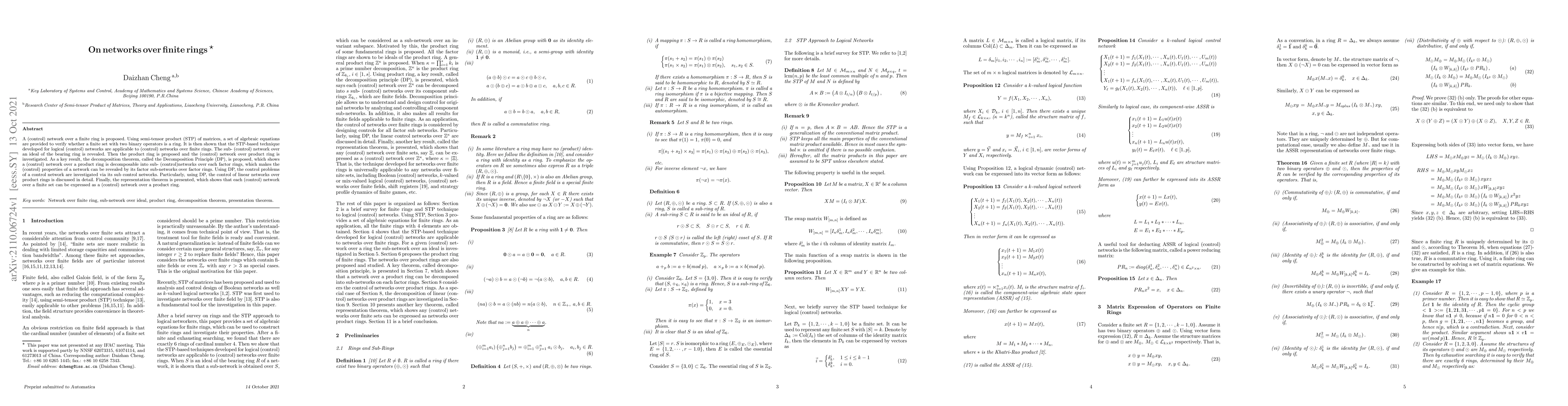 Researchers propose a new framework for control networks over finite rings using semi-tensor product, enabling decomposition into sub-networks and revealing control properties.