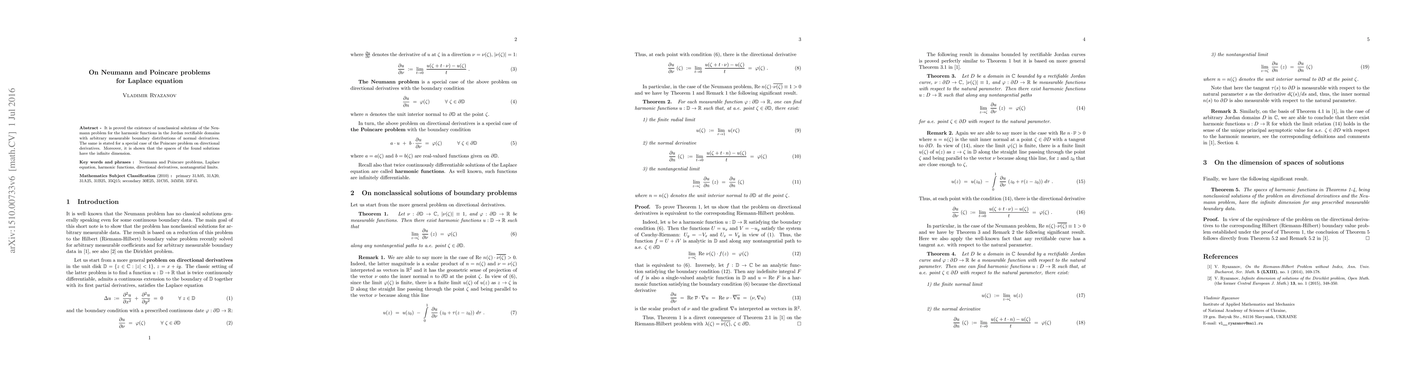 This paper proves the existence of nonclassical solutions for the Neumann problem in Jordan rectifiable domains with arbitrary measurable boundary distributions of normal derivatives, and similarly for the partial case of the Poincare problem on directional derivatives. It also demonstrates that the solution spaces are infinitely dimensional.