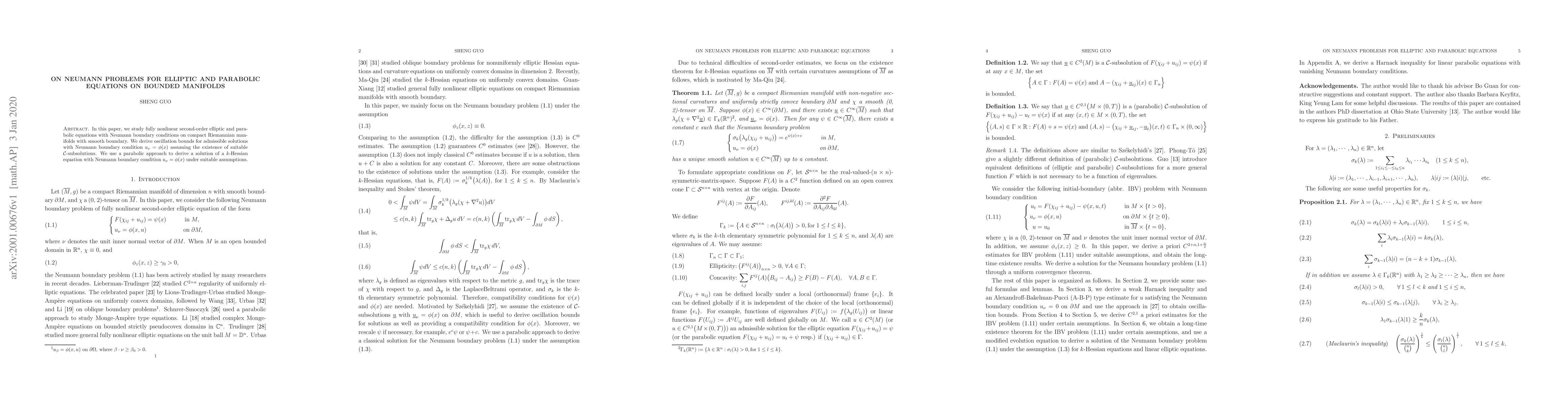 This paper investigates fully nonlinear second-order elliptic and parabolic equations with Neumann boundary conditions on compact Riemannian manifolds. It derives oscillation bounds for solutions and uses a parabolic approach to solve a $k$-Hessian equation under suitable assumptions.