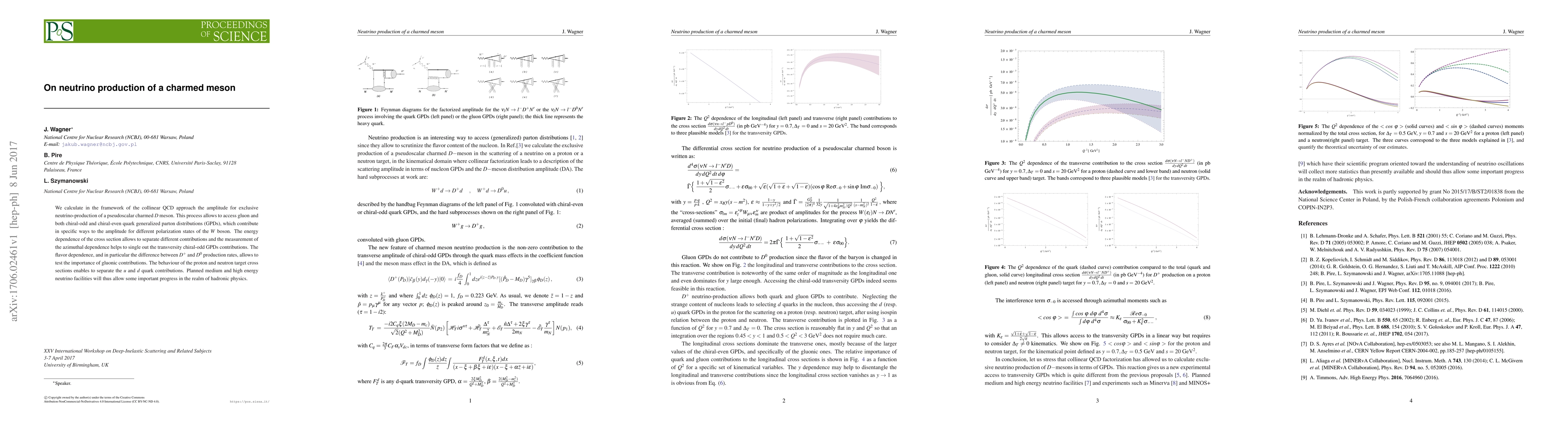 This paper calculates the amplitude for neutrino-induced production of a charmed $D$ meson using the collinear QCD approach, analyzing contributions from gluon and quark generalized parton distributions. The study aims to distinguish between different quark flavors and test the significance of gluonic contributions, with implications for future neutrino facilities.