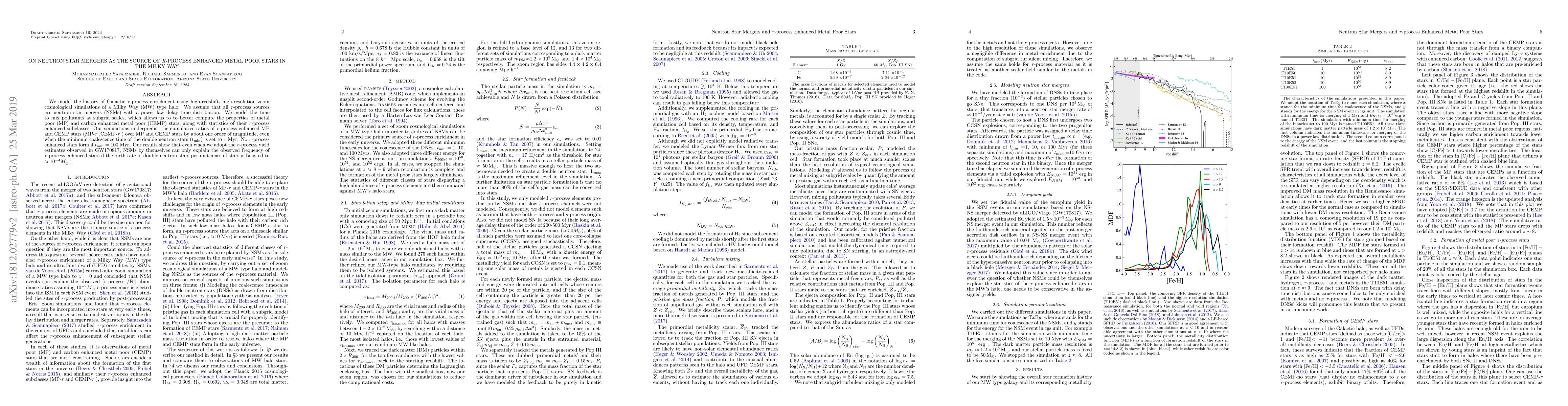 We model the history of Galactic r-process enrichment using high-redshift, high-resolution zoom cosmological simulations of a Milky Way (MW) type halo. We assume that all r-process sources are neutron star mergers (NSMs) with a power law delay time distribution. We model the time to mix pollutants at subgrid scales, which allows us to to better compute the properties of metal poor (MP) and carbon enhanced metal poor (CEMP) stars, along with statistics of their r-process enhanced subclasses. Our simulations underpredict the cumulative ratios of r-process enhanced MP and CEMP stars (MP-r, CEMP-r) over MP and CEMP stars by about one order of magnitude, even when the minimum coalescence time of the double neutron stars ($t_{\rm min}$) is set to 1 Myr. No r-process enhanced stars form if $t_{\rm min}=100$ Myr. Our results show that even when we adopt the r-process yield estimates observed in GW170817, NSMs by themselves can only explain the observed frequency of r-process enhanced stars if either the birth rate of double neutron stars per unit mass of stars is boosted to $\approx10^{-4} M_\odot^{-1}$ or the Europium yield of each NSM event is boosted to $\approx 10^{-4} M_{\odot}$.