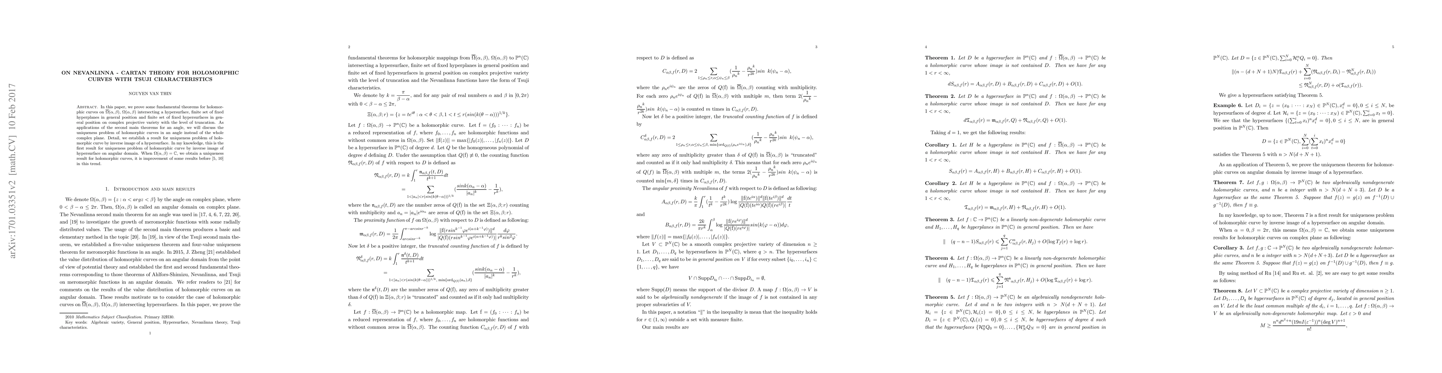 In this paper, we prove some fundamental theorems for holomorphic curves on angular domain intersecting a hypersurface, finite set of fixed hyperplanes in general position and finite set of fixed hypersurfaces in general position on complex projective variety with the level of truncation. As applications of the second main theorems for an angle, we will discuss the uniqueness problem of holomorphic curves in an angle instead of the whole complex plane. Detail, we establish a result for uniqueness problem of holomorphic curve by inverse image of a hypersurface. In my knowledge, this is the first result for uniqueness problem of holomorphic curve by inverse image of hypersurface on angular domain. On complex plane, we obtain a uniqueness result for holomorphic curves, it is improvement of some results before [5, 10] in this trend.