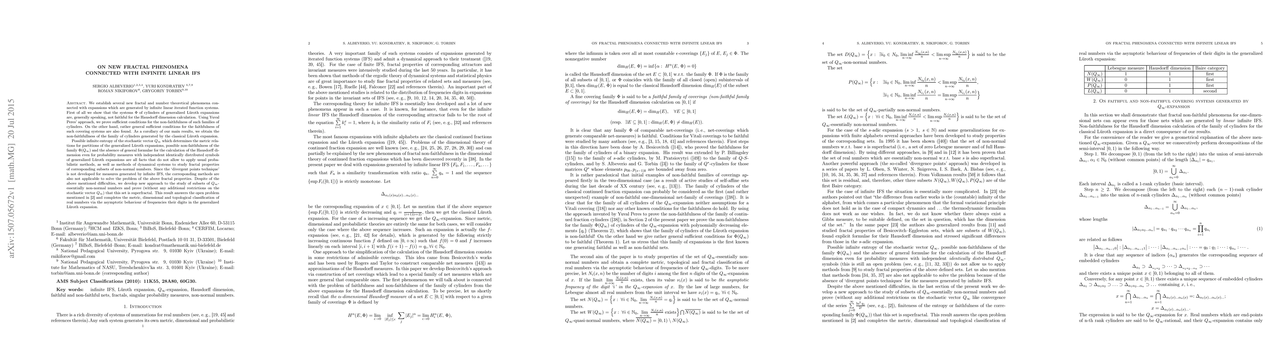 This research identifies new fractal and number-theoretical phenomena linked to infinite linear iterated function systems (IFS). It proves conditions for the non-faithfulness and faithfulness of certain covering systems, demonstrating that cylinder families in generalized Lüroth expansions aren't typically reliable for calculating Hausdorff dimensions. Despite challenges in applying standard methods, the study reveals that subsets of Q∞-essentially non-normal numbers are superfractal, solving an open problem and completing the classification of real numbers based on digit frequency asymptotics in generalized Lüroth expansions.