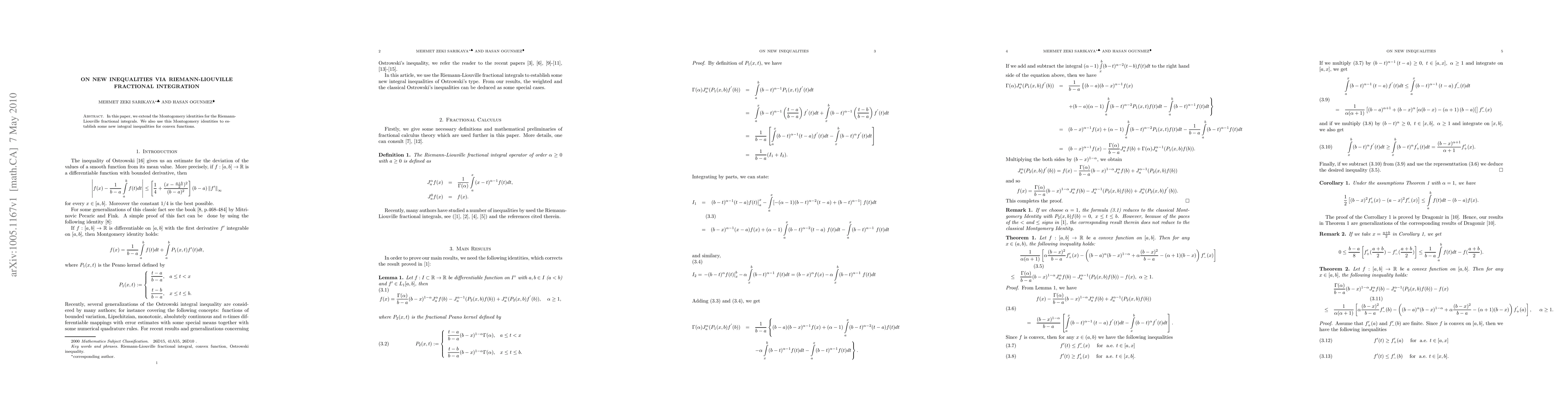 This paper extends the Montgomery identities for Riemann-Liouville fractional integrals and utilizes these identities to derive new integral inequalities for convex functions. The work provides novel insights into fractional integration and its applications.