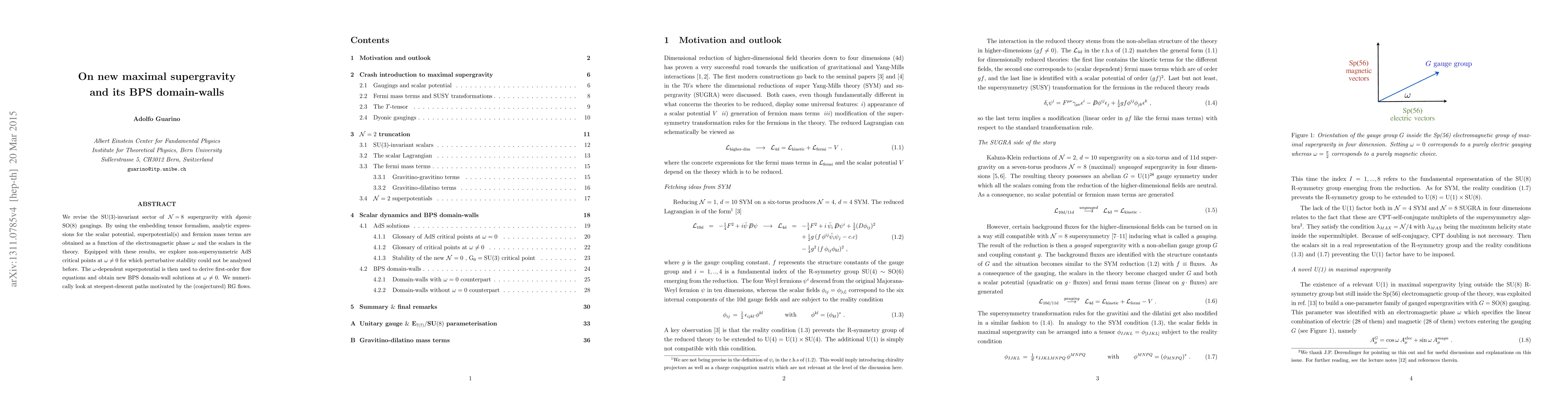 We revise the SU(3)-invariant sector of $\mathcal{N}=8$ supergravity with dyonic SO(8) gaugings. By using the embedding tensor formalism, analytic expressions for the scalar potential, superpotential(s) and fermion mass terms are obtained as a function of the electromagnetic phase $\omega$ and the scalars in the theory. Equipped with these results, we explore non-supersymmetric AdS critical points at $\omega \neq 0$ for which perturbative stability could not be analysed before. The $\omega$-dependent superpotential is then used to derive first-order flow equations and obtain new BPS domain-wall solutions at $\omega \neq 0$. We numerically look at steepest-descent paths motivated by the (conjectured) RG flows.
