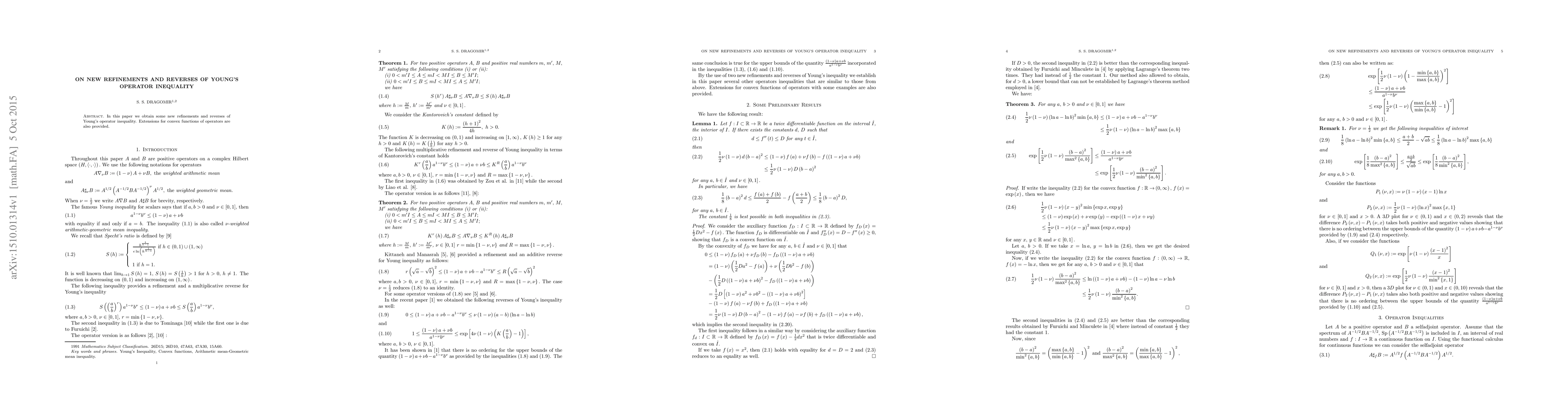 Summary: This paper presents new refinements and reverses of Young's operator inequality, along with extensions for convex functions applied to operators. The findings enhance the understanding and application of operator inequalities in mathematical analysis.