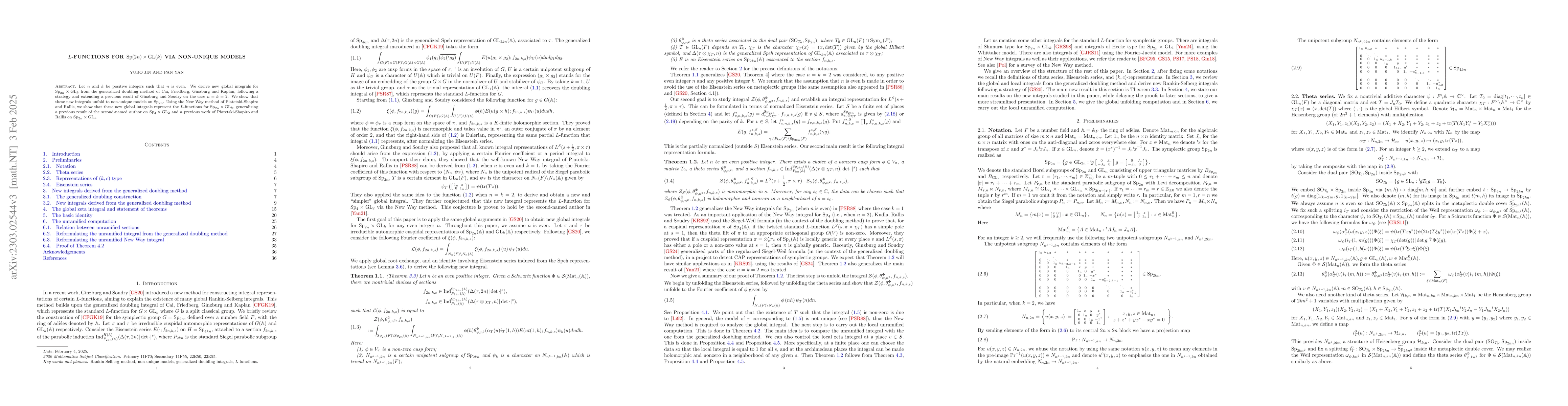 The research uses the generalized doubling method of Cai, Friedberg, Ginzburg, and Kaplan to derive new integrals for $ ext{Sp}(2n) imes ext{GL}(k)$.