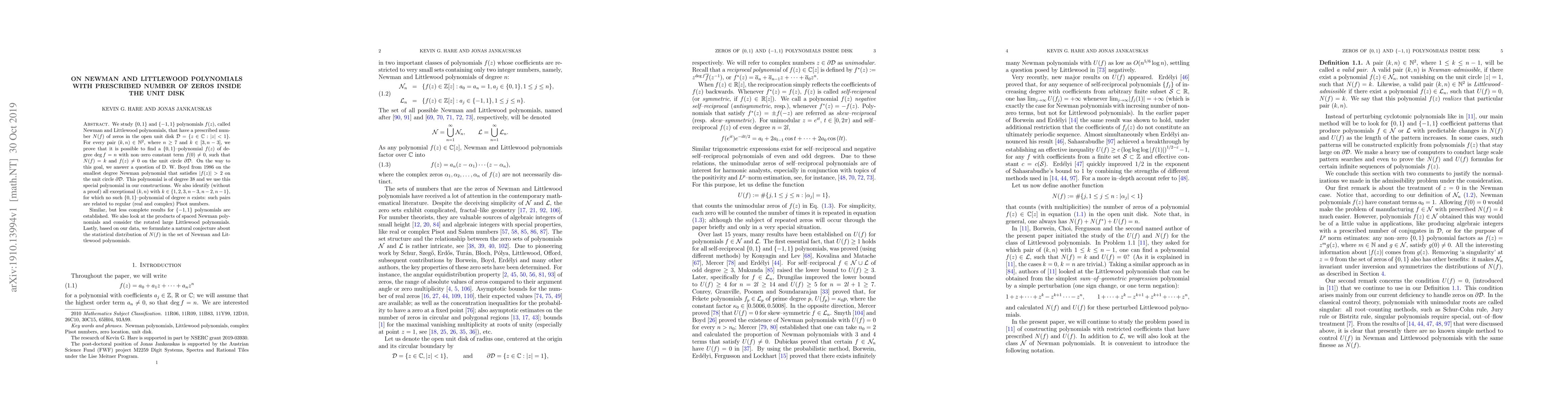 This paper explores Newman and Littlewood polynomials of $\{0, 1\}$ and $\{-1, 1\}$ coefficients with a specified number of zeros inside the unit disk, proving the existence of such polynomials for certain degree and zero counts. It also addresses a 1986 question regarding the smallest degree Newman polynomial with $|f(z)| > 2$ on the unit circle.