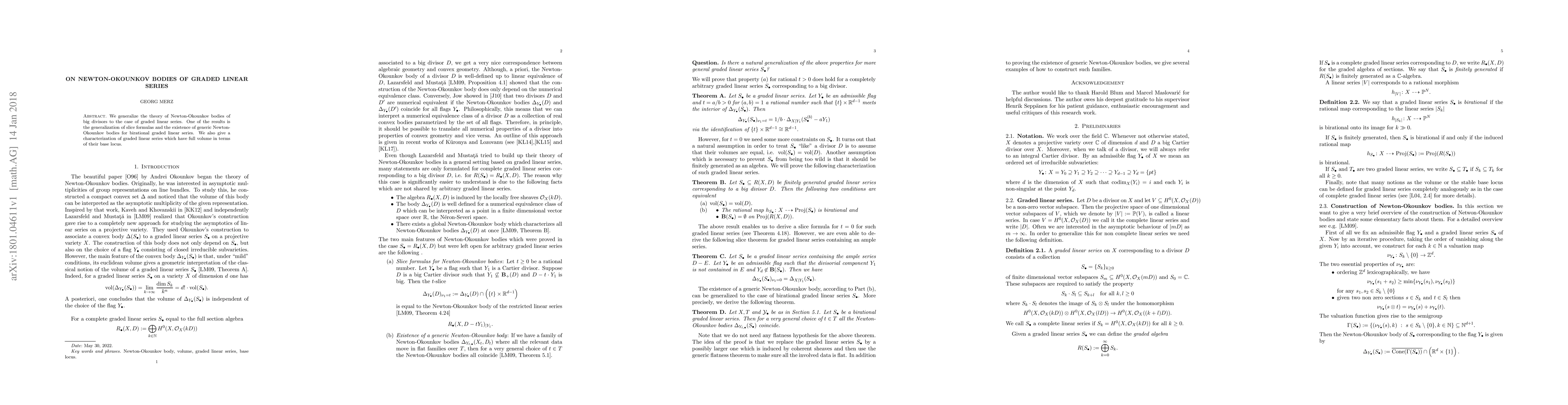This paper generalizes Newton-Okounkov bodies theory from big divisors to graded linear series, proving slice formula generalizations and the existence of generic Newton-Okounkov bodies for birational graded linear series, along with a characterization of full volume series based on their base locus.