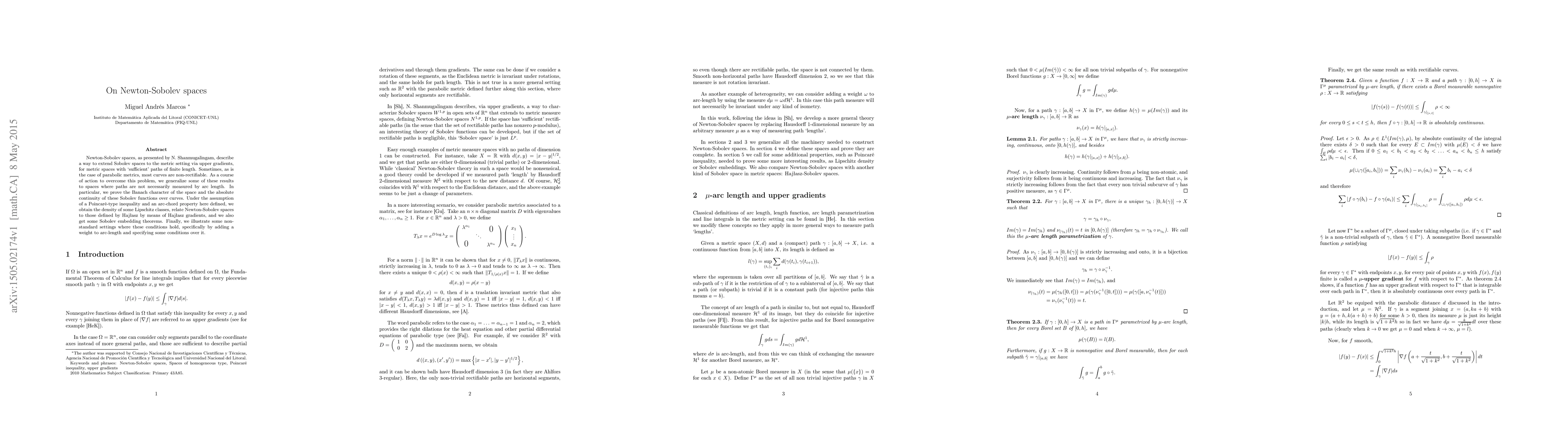 Newton-Sobolev spaces, as presented by N. Shanmugalingam, describe a way to extend Sobolev spaces to the metric setting via upper gradients, for metric spaces with `sufficient' paths of finite length. Sometimes, as is the case of parabolic metrics, most curves are non-rectifiable. As a course of action to overcome this problem, we generalize some of these results to spaces where paths are not necessarily measured by arc length. In particular, we prove the Banach character of the space and the absolute continuity of these Sobolev functions over curves. Under the assumption of a Poincar\'e-type inequality and an arc-chord property here defined, we obtain the density of some Lipschitz classes, relate Newton-Sobolev spaces to those defined by Hajlasz by means of Hajlasz gradients, and we also get some Sobolev embedding theorems. Finally, we illustrate some non-standard settings where these conditions hold, specifically by adding a weight to arc-length and specifying some conditions over it.