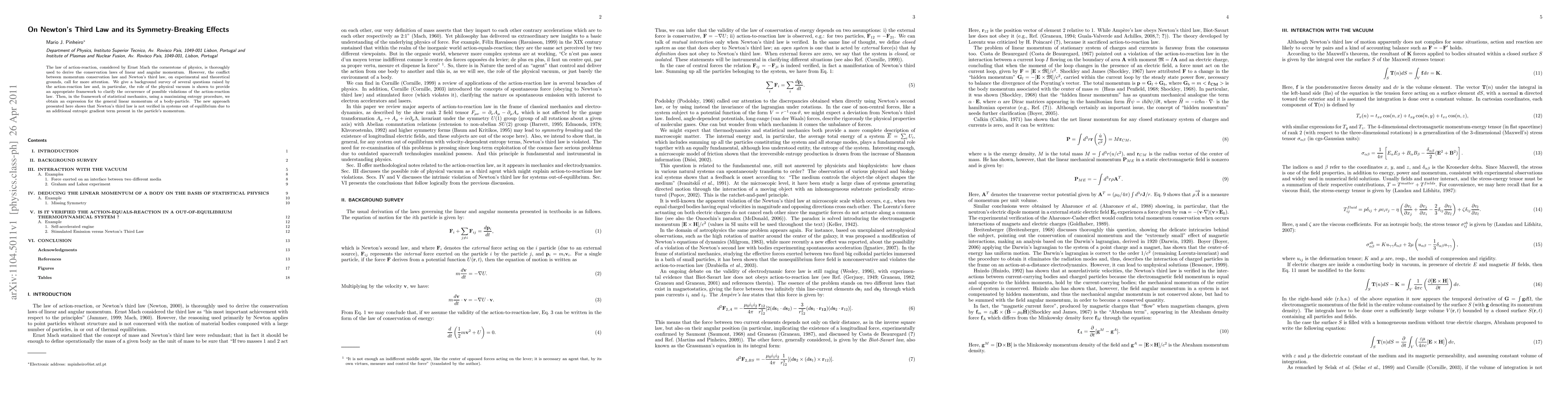 This paper investigates the discrepancies between Newton's third law and momentum conservation, highlighting the role of the physical vacuum in revealing potential violations. It employs statistical mechanics to derive a new expression for linear momentum, demonstrating that Newton's third law breaks down in out-of-equilibrium systems due to an entropic gradient term.