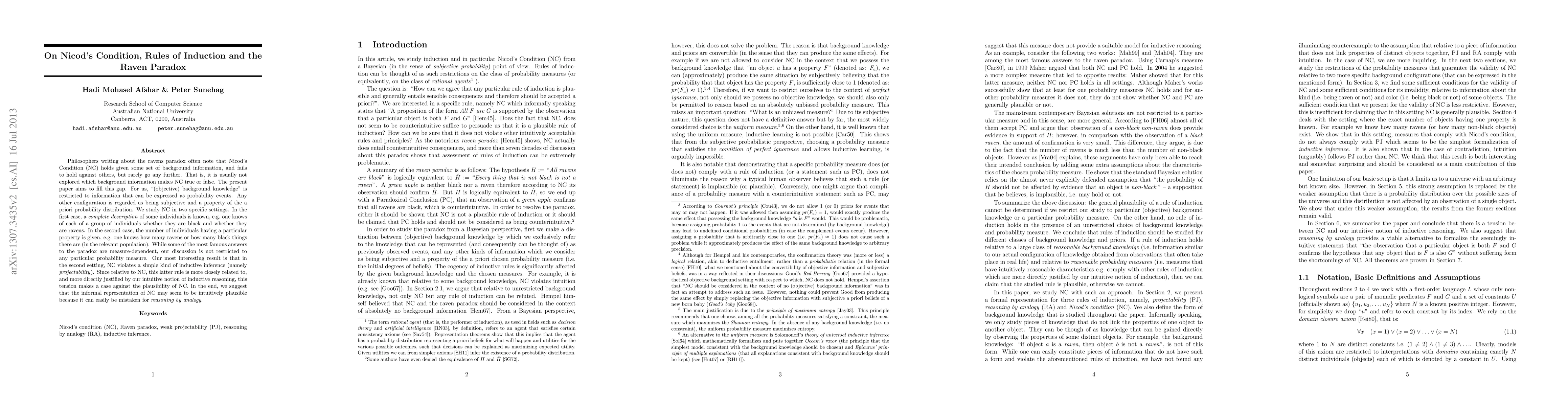 Philosophers writing about the ravens paradox often note that Nicod's Condition (NC) holds given some set of background information, and fails to hold against others, but rarely go any further. That is, it is usually not explored which background information makes NC true or false. The present paper aims to fill this gap. For us, "(objective) background knowledge" is restricted to information that can be expressed as probability events. Any other configuration is regarded as being subjective and a property of the a priori probability distribution. We study NC in two specific settings. In the first case, a complete description of some individuals is known, e.g. one knows of each of a group of individuals whether they are black and whether they are ravens. In the second case, the number of individuals having a particular property is given, e.g. one knows how many ravens or how many black things there are (in the relevant population). While some of the most famous answers to the paradox are measure-dependent, our discussion is not restricted to any particular probability measure. Our most interesting result is that in the second setting, NC violates a simple kind of inductive inference (namely projectability). Since relative to NC, this latter rule is more closely related to, and more directly justified by our intuitive notion of inductive reasoning, this tension makes a case against the plausibility of NC. In the end, we suggest that the informal representation of NC may seem to be intuitively plausible because it can easily be mistaken for reasoning by analogy.