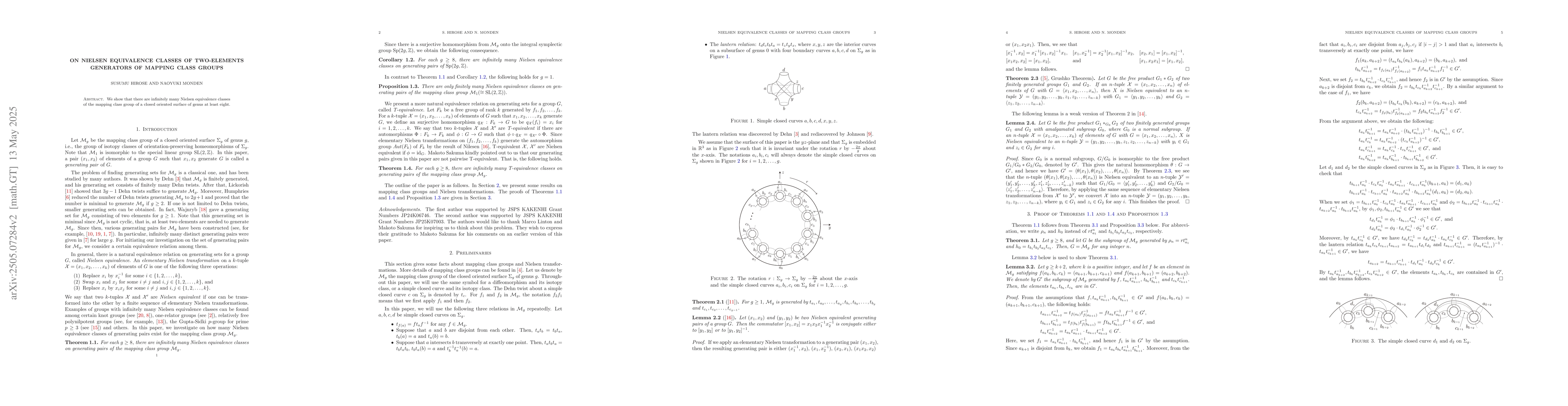 The paper presents a novel approach to classifying Nielsen equivalence of two-element generators in mapping class groups for high genus surfaces.