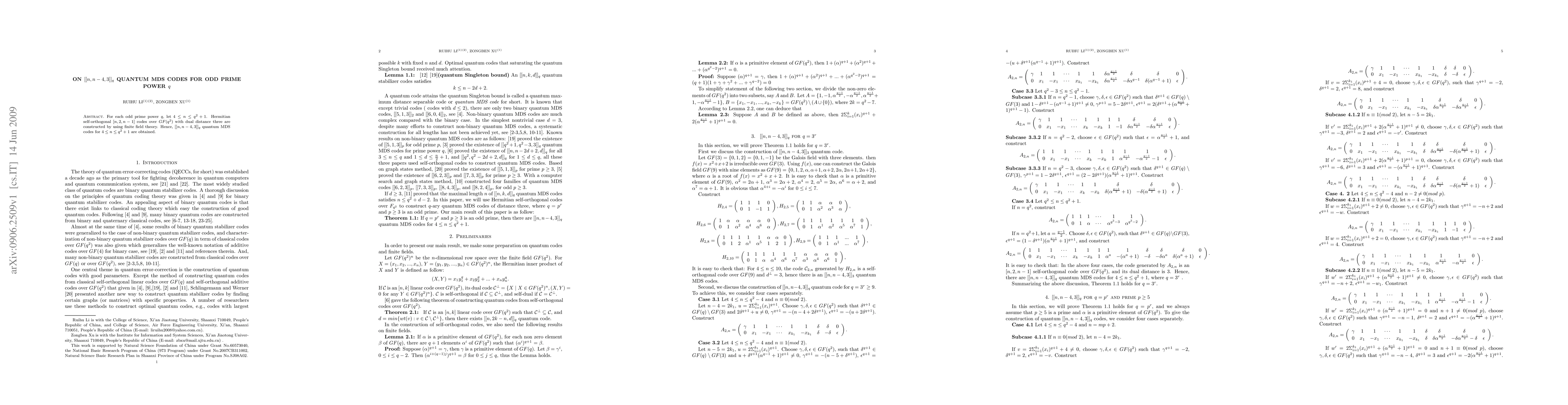 Researchers constructed $[[n,n-4,3]]_{q}$ quantum MDS codes for odd prime power q using Hermitian self-orthogonal codes over GF(q^2) with dual distance three.