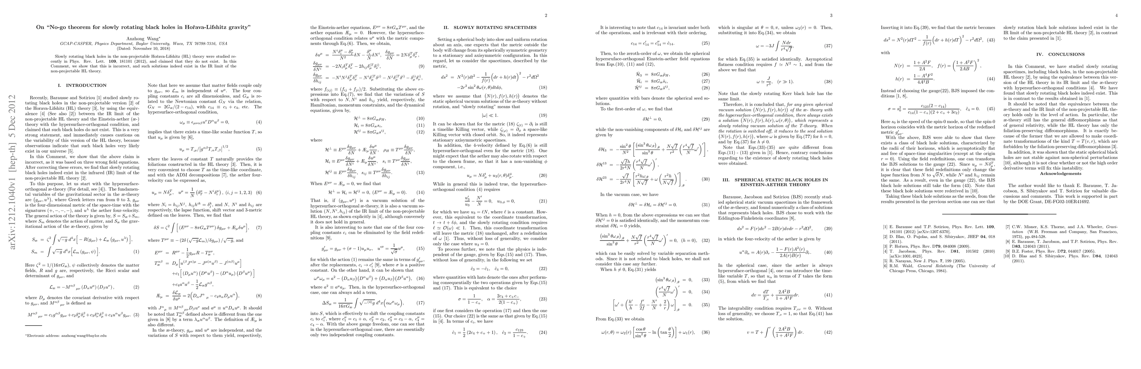 Slowly rotating black holes in the non-projectable Ho\v{r}ava-Lifshitz (HL) theory were studied recently in Phys. Rev. Lett. {\bf 109}, 181101 (2012), and claimed that they do not exist. In this Comment, we show that this is incorrect, and such solutions indeed exist in the IR limit of the non-projectable HL theory.