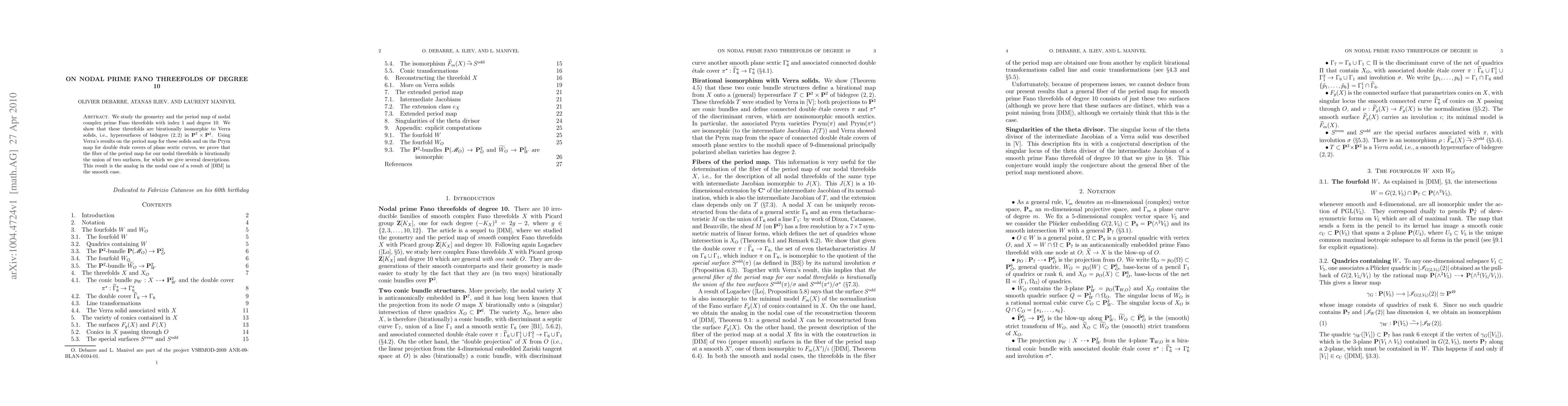 The paper presents a detailed analysis of the birational isomorphism between nodal prime Fano threefolds of degree 10 and Verra solids, along with a proof that the fiber of the period map for these nodal threefolds is birationally the union of two surfaces.
