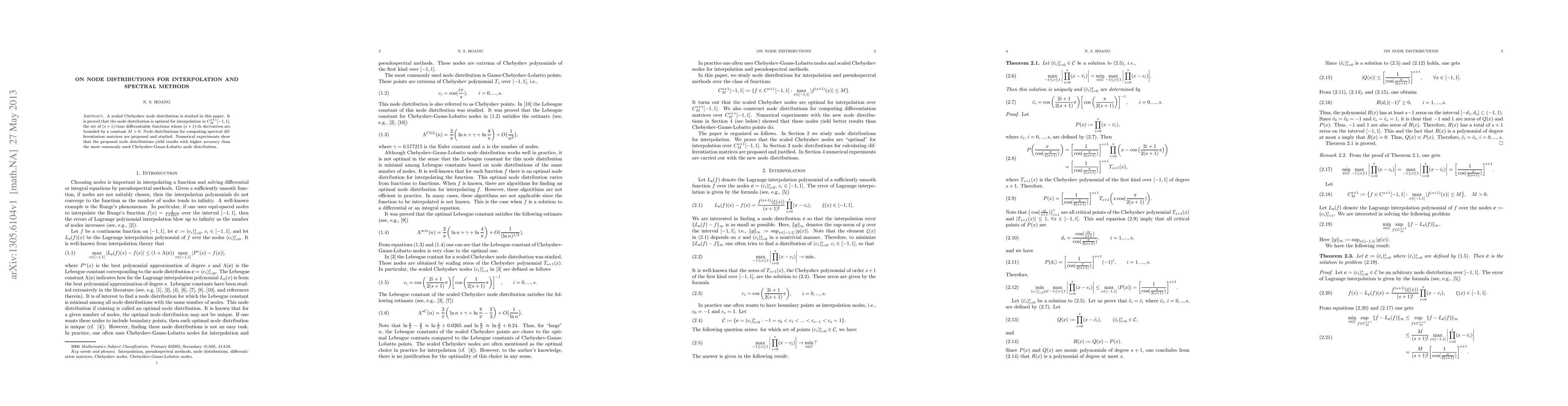 A new Chebyshev node distribution is proposed for improved interpolation accuracy in spectral methods, outperforming the traditional Chebyshev-Gauss-Lobatto method.