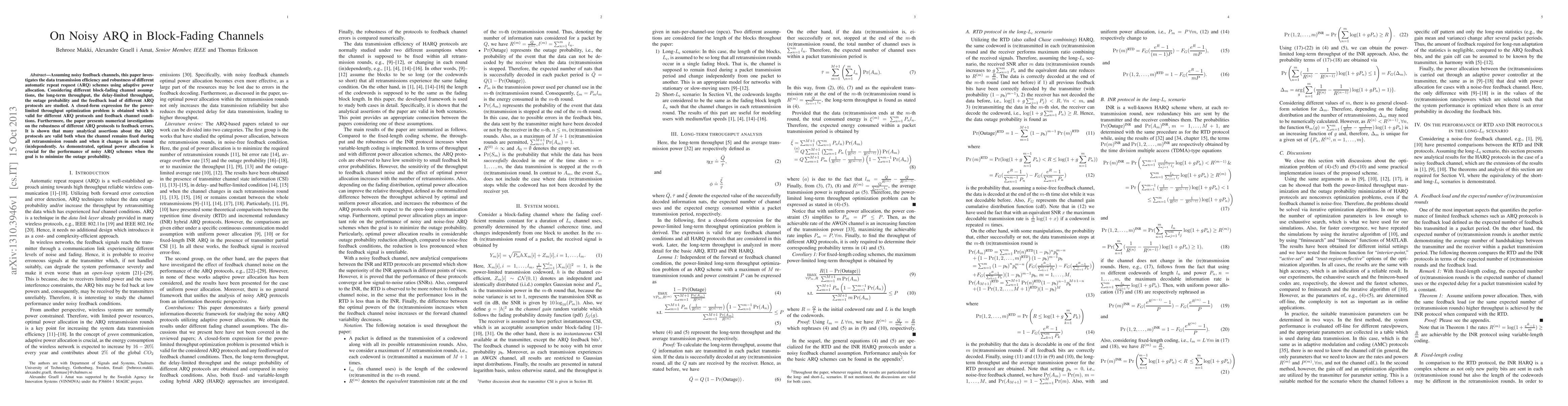 This paper examines the efficiency and robustness of various ARQ schemes under noisy feedback channels in block-fading environments, deriving a closed-form expression for power-limited throughput optimization. It highlights the importance of optimal power allocation in minimizing outage probability and demonstrates the robustness of ARQ protocols against feedback errors.