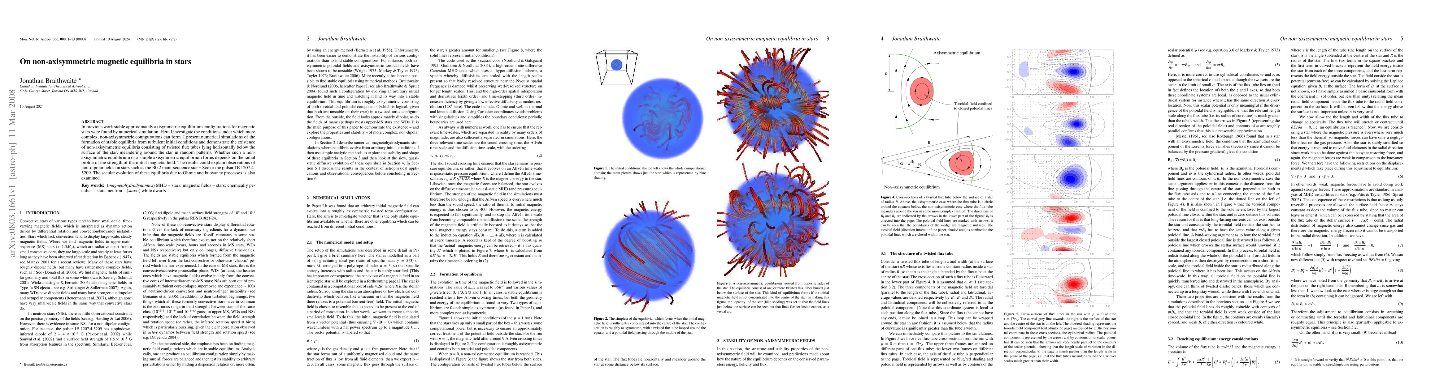 In previous work stable approximately axisymmetric equilibrium configurations for magnetic stars were found by numerical simulation. Here I investigate the conditions under which more complex, non-axisymmetric configurations can form. I present numerical simulations of the formation of stable equilibria from turbulent initial conditions and demonstrate the existence of non-axisymmetric equilibria consisting of twisted flux tubes lying horizontally below the surface of the star, meandering around the star in random patterns. Whether such a non-axisymmetric equilibrium or a simple axisymmetric equilibrium forms depends on the radial profile of the strength of the initial magnetic field. The results could explain observations of non-dipolar fields on stars such as the B0.2 main-sequence star tau-Sco or the pulsar 1E 1207.4-5209. The secular evolution of these equilibria due to Ohmic and buoyancy processes is also examined.