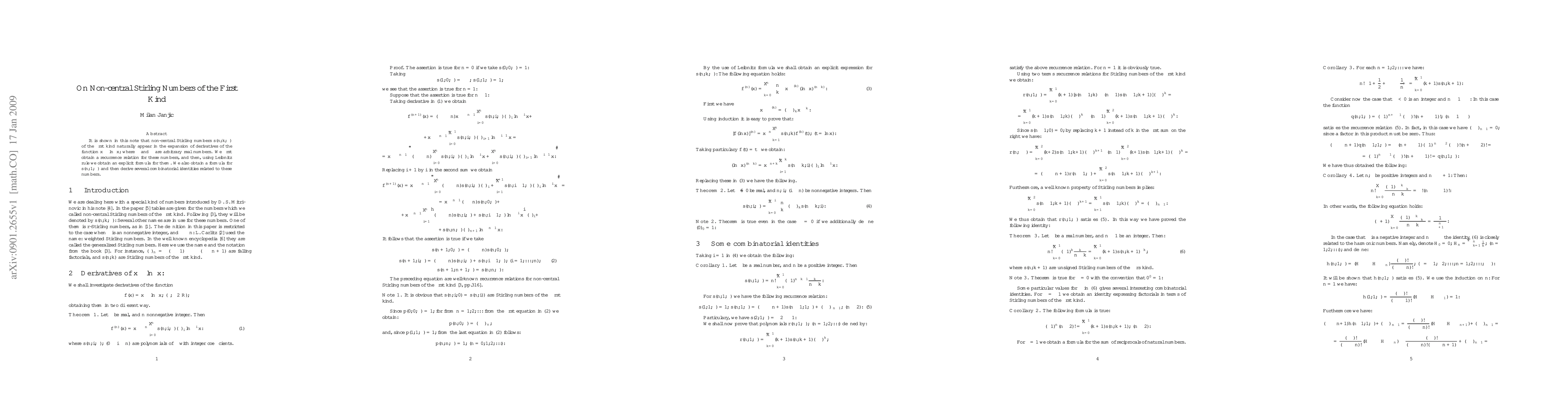 It is shown in this note that non-central Stirling numbers s(n,k,a) of the first kind naturally appear in the expansion of derivatives of the product of a power function and a logarithn function. We first obtain a recurrence relation for these numbers, and then, using Leibnitz rule we obtain an explicit formula for these numbers. We also obtain an explicit formula for s(n,1,a), and then derive several combinatorial identities related to these numbers.