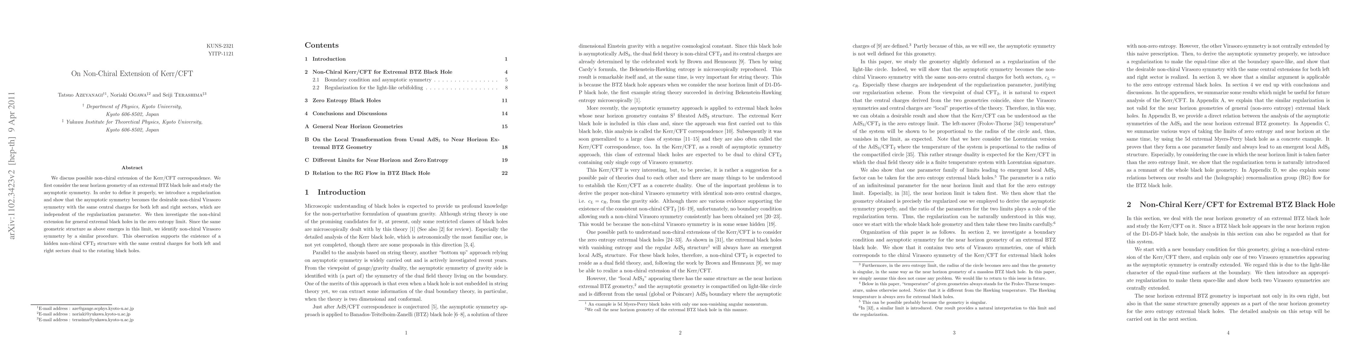 We discuss possible non-chiral extension of the Kerr/CFT correspondence. We first consider the near horizon geometry of an extremal BTZ black hole and study the asymptotic symmetry. In order to define it properly, we introduce a regularization and show that the asymptotic symmetry becomes the desirable non-chiral Virasoro symmetry with the same central charges for both left and right sectors, which are independent of the regularization parameter. We then investigate the non-chiral extension for general extremal black holes in the zero entropy limit. Since the same geometric structure as above emerges in this limit, we identify non-chiral Virasoro symmetry by a similar procedure. This observation supports the existence of a hidden non-chiral CFT_2 structure with the same central charges for both left and right sectors dual to the rotating black holes.