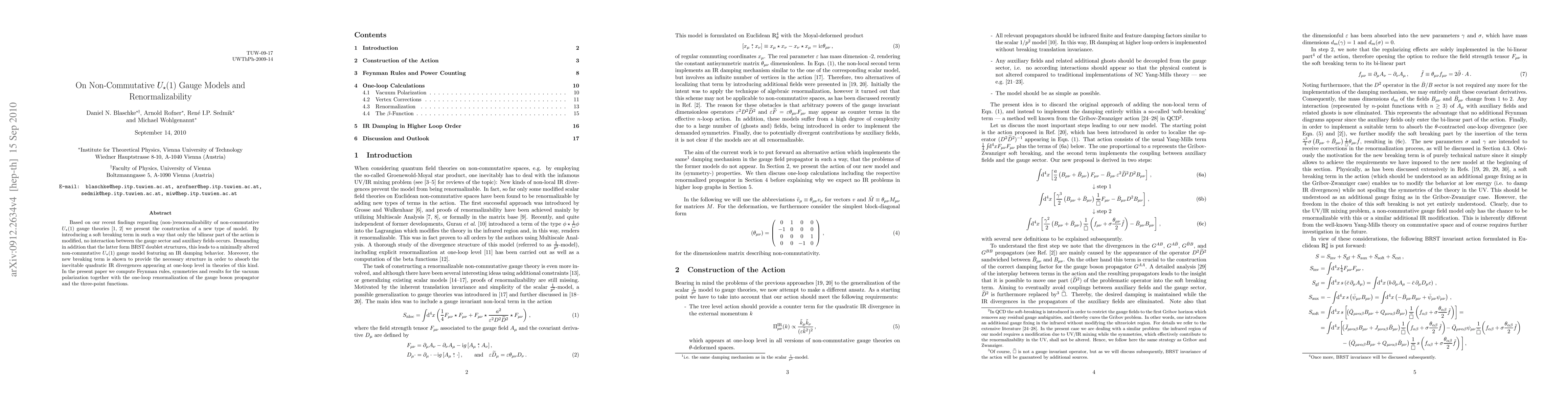 This paper constructs a modified non-commutative U*(1) gauge model with a soft breaking term that introduces IR damping and absorbs quadratic IR divergences, ensuring renormalizability. It computes the relevant Feynman rules, symmetries, vacuum polarization, and one-loop renormalization of gauge boson propagators and three-point functions.