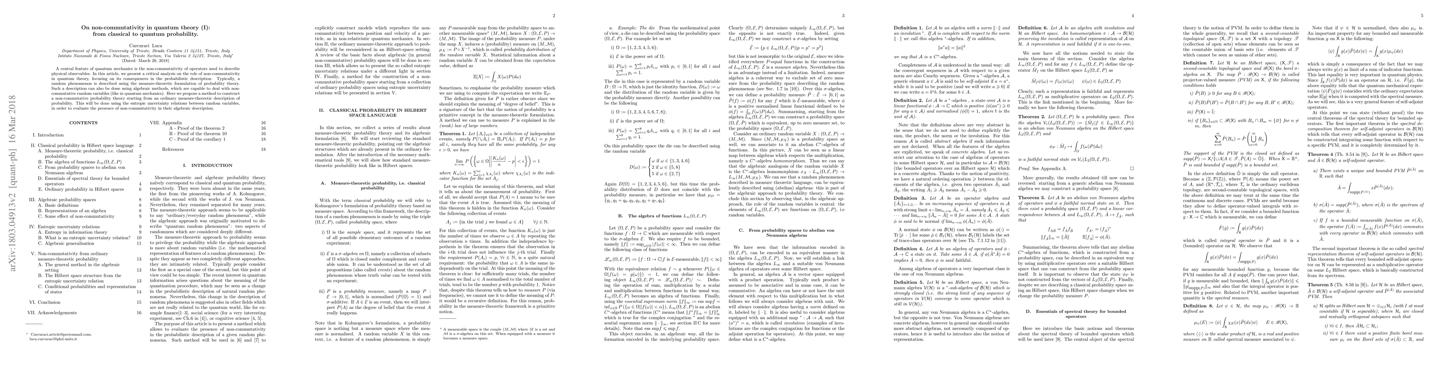 This paper critically analyzes the role of non-commutativity in quantum mechanics, focusing on its probabilistic implications. It proposes a method to construct a non-commutative probability theory from classical measure-theoretic probability, using entropic uncertainty relations to assess non-commutativity in the algebraic description of random variables.