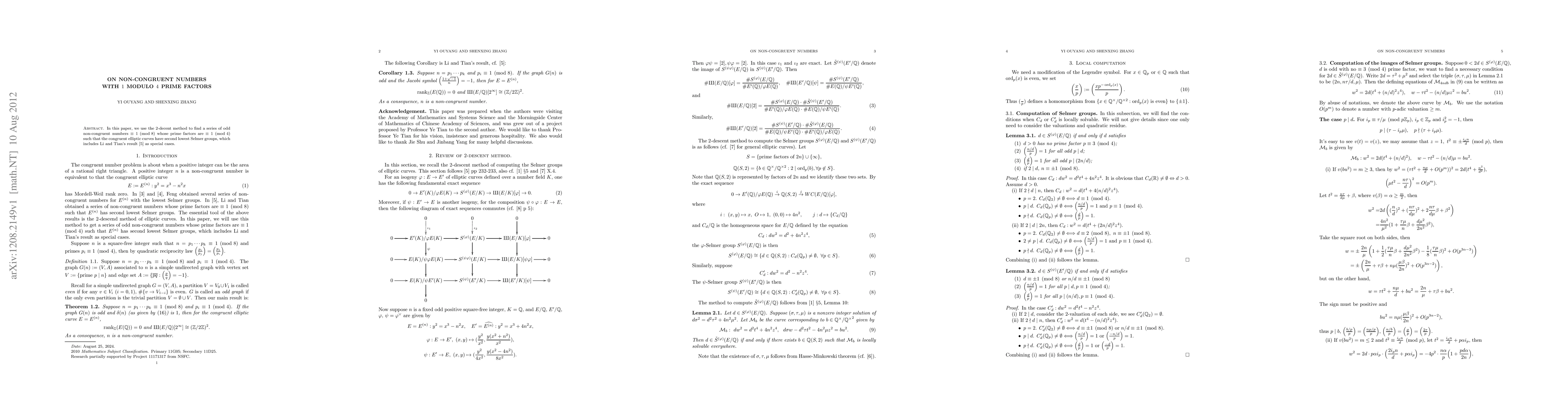 This paper employs the 2-decent method to identify a series of odd non-congruent numbers congruent to 1 modulo 8, with prime factors congruent to 1 modulo 4, yielding elliptic curves with second lowest Selmer groups, encompassing prior results by Li and Tian (2000).