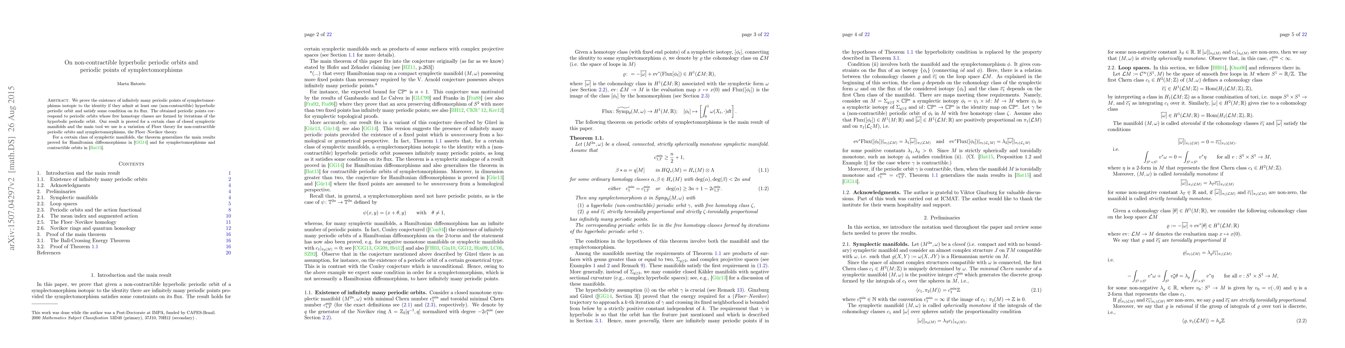 This paper proves the existence of infinitely many periodic points for symplectomorphisms isotopic to the identity, given the presence of at least one non-contractible hyperbolic periodic orbit and a flux condition, using a variation of Floer theory. The result applies to a specific class of closed symplectic manifolds.