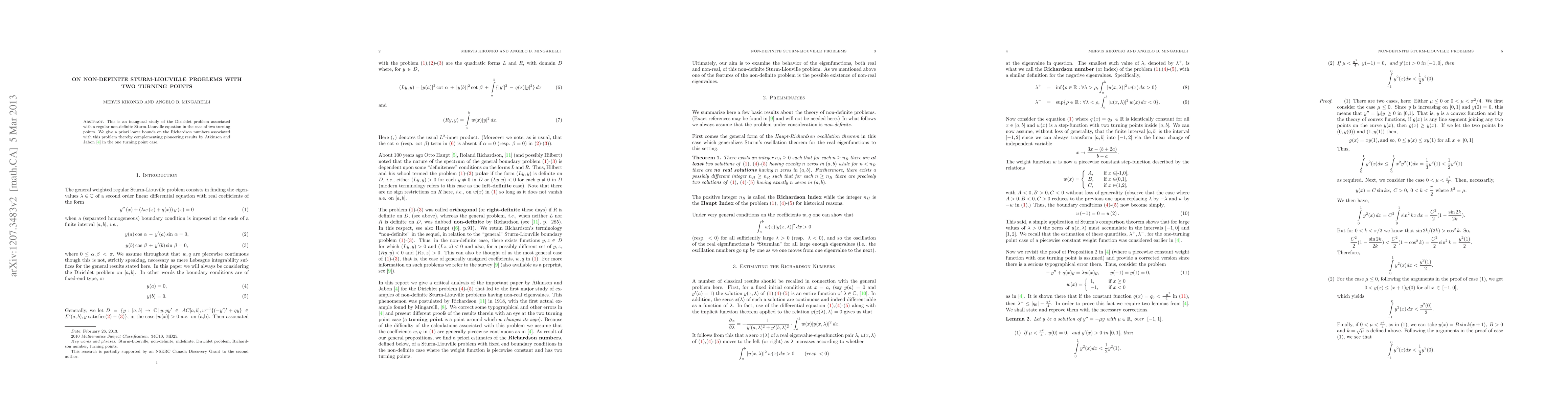 This is an inaugural study of the Dirichlet problem associated with a regular non-definite Sturm-Liouville equation in the case of two turning points. We give a priori lower bounds on the Richardson numbers associated with this problem thereby complementing pioneering results by Atkinson and Jabon (1984) in the one turning point case
