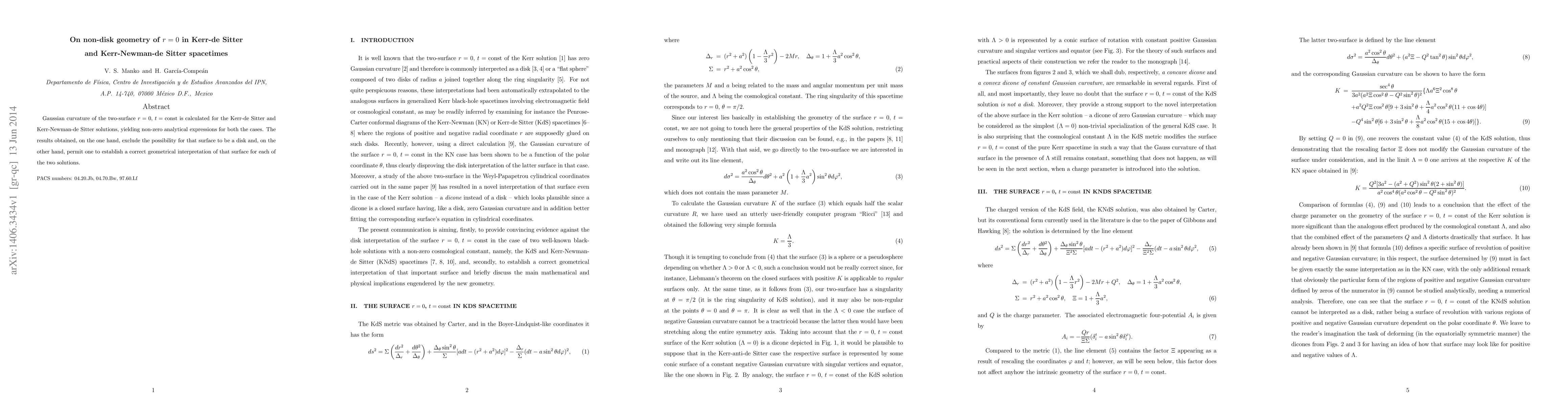 Researchers calculated Gaussian curvature of a specific surface in Kerr-de Sitter and Kerr-Newman-de Sitter spacetimes, finding it is non-zero and excluding the possibility of the surface being a disk.
