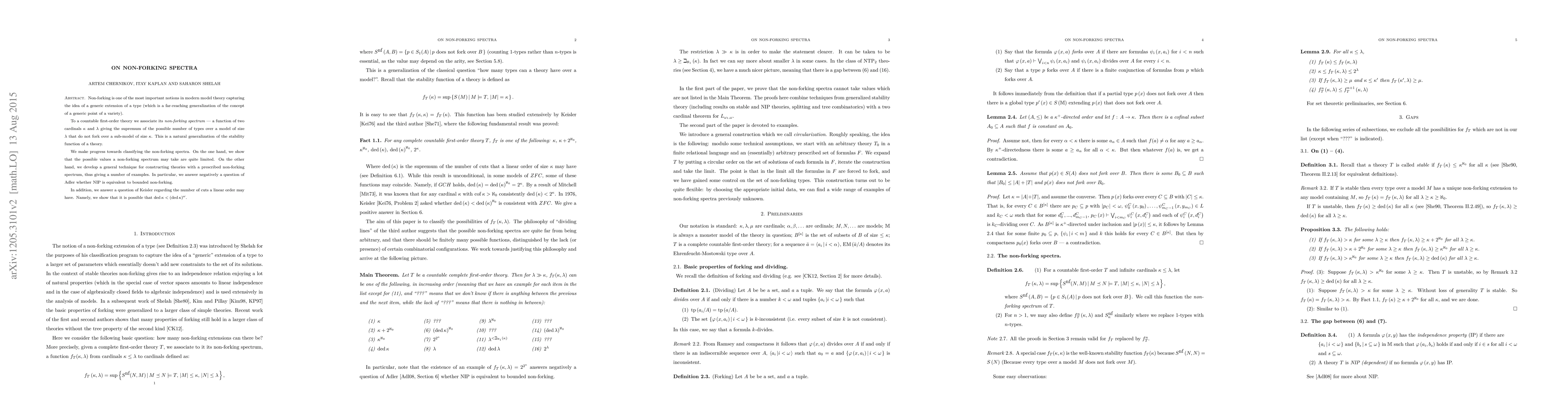 This paper explores the non-forking spectrum in model theory, showing that its possible values are limited and developing techniques to construct theories with specific non-forking spectra. It also answers negatively Adler's question on NIP equivalence to bounded non-forking and resolves Keisler's query about the number of cuts in linear orders.