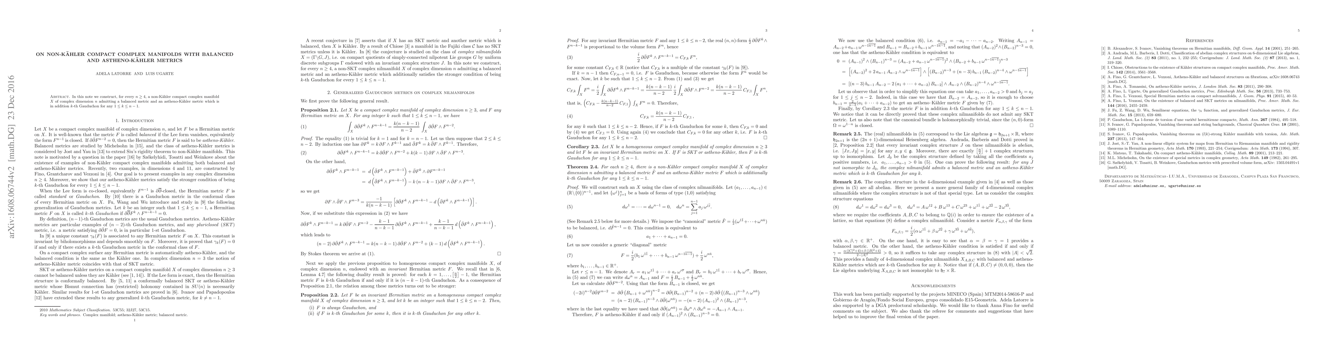 This paper constructs non-Kähler compact complex manifolds of dimension $n \geq 4$ that support both balanced and astheno-Kähler metrics, which are also $k$-th Gauduchon for $1\leq k\leq n-1$. It provides specific examples of such manifolds.