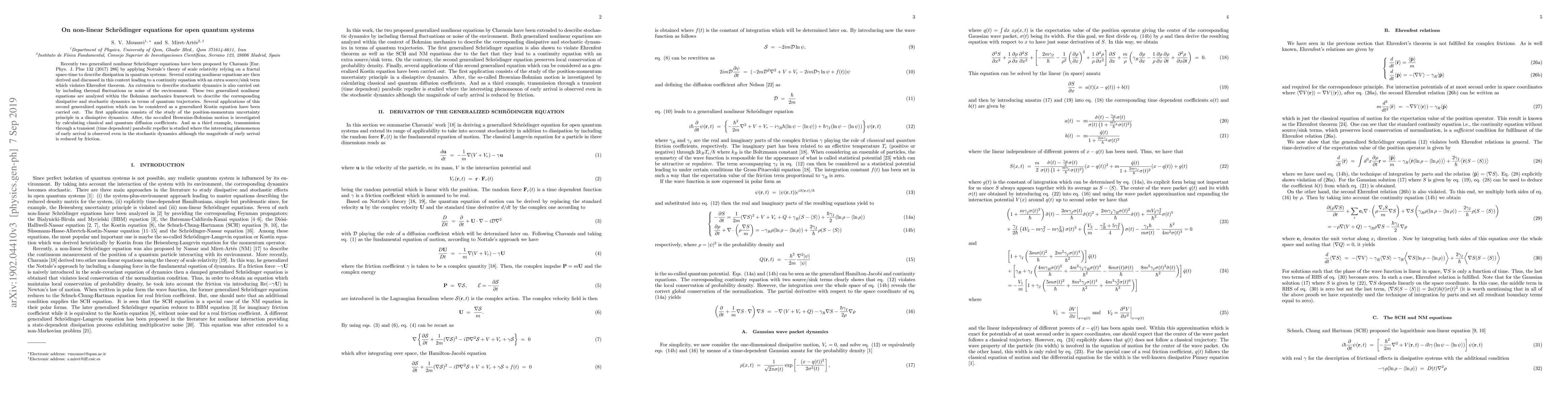 Recently two generalized nonlinear Schr\"{o}dinger equations have been proposed by Chavanis [Eur. Phys. J. Plus 132 (2017) 286] by applying Nottale's theory of scale relativity relying on a fractal space-time to describe dissipation in quantum systems. Several existing nonlinear equations are then derived and discussed in this context leading to a continuity equation with an extra source/sink term which violates Ehrenfest theorem. An extension to describe stochastic dynamics is also carried out by including thermal fluctuations or noise of the environment. These two generalized nonlinear equations are analyzed within the Bohmian mechanics framework to describe the corresponding dissipative and stochastic dynamics in terms of quantum trajectories. Several applications of this second generalized equation which can be considered as a generalized Kostin equation have been carried out. The first application consists of the study of the position-momentum uncertainty principle in a dissiaptive dynamics. After, the so-called Brownian-Bohmian motion is investigated by calculating classical and quantum diffusion coefficients. And as a third example, transmission through a transient (time dependent) parabolic repeller is studied where the interesting phenomenon of early arrival is observed even in the stochastic dynamics although the magnitude of early arrival is reduced by friction.