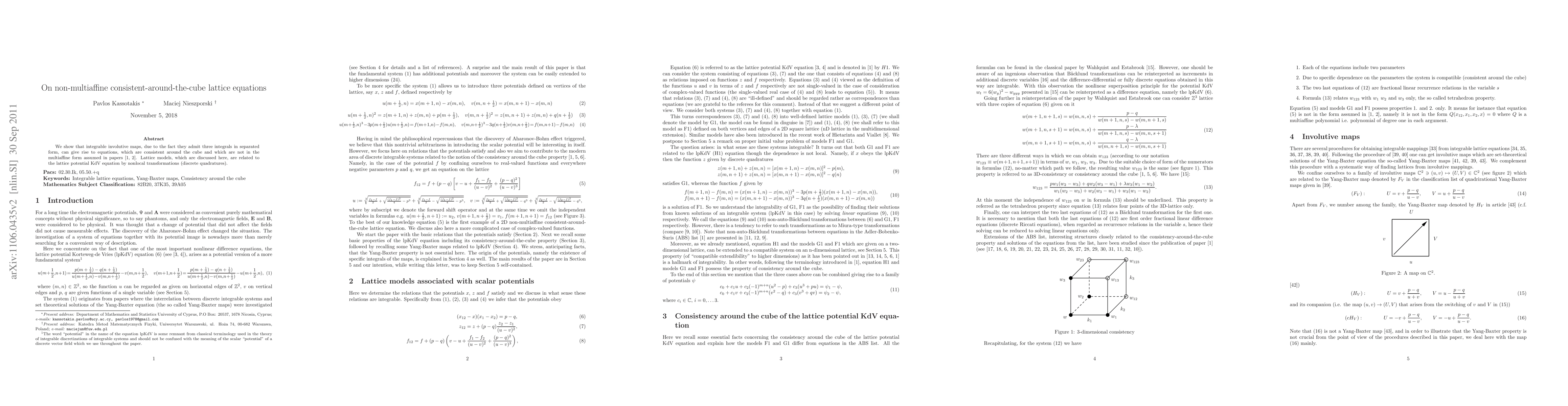 We show that integrable involutive maps, due to the fact they admit three integrals in separated form, can give rise to equations, which are consistent around the cube and which are not in the multiaffine form assumed in papers [1, 2]. Lattice models, which are discussed here, are related to the lattice potential KdV equation by nonlocal transformations (discrete quadratures).
