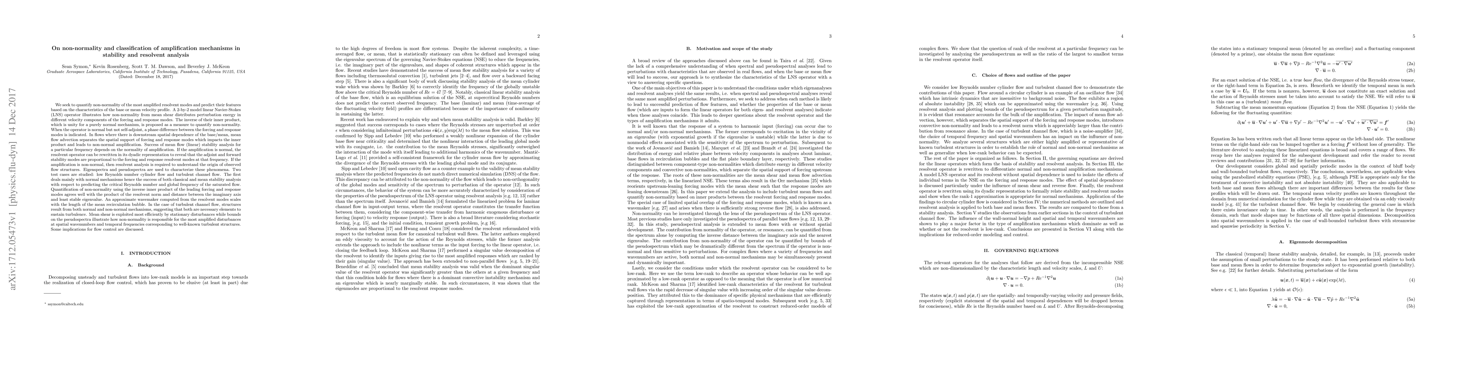 This paper investigates amplification mechanisms in stability analysis of Navier-Stokes flows, finding that non-normality affects the distribution of perturbation energy and can lead to complex flow structures.