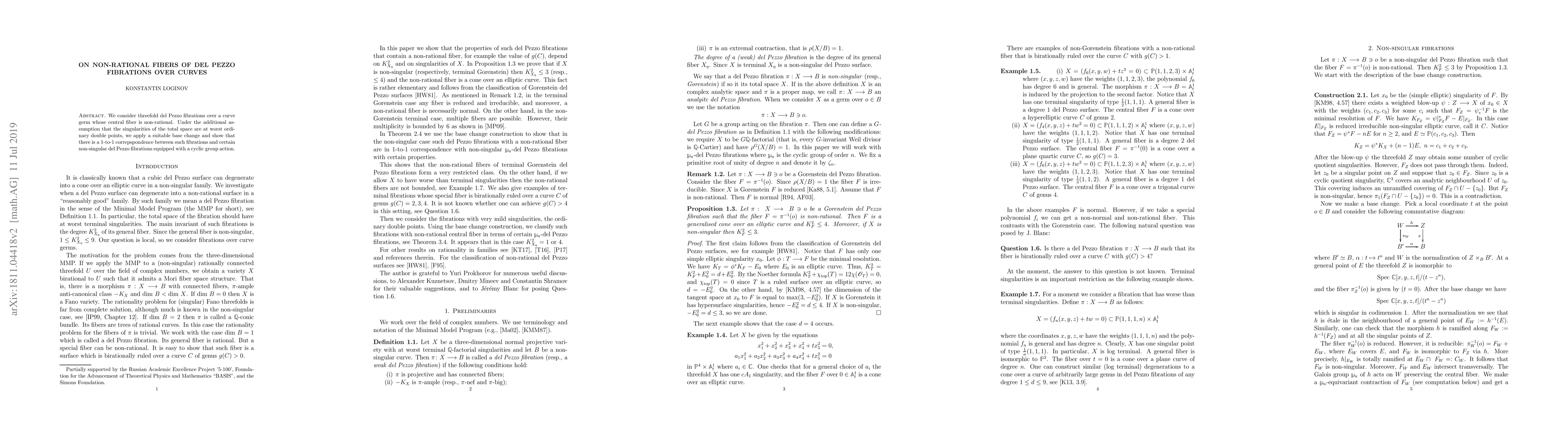 This research contributes to the understanding of the geometric properties of del Pezzo fibrations, particularly focusing on non-rational fibers, which has implications for the classification and study of algebraic surfaces and their singularities.