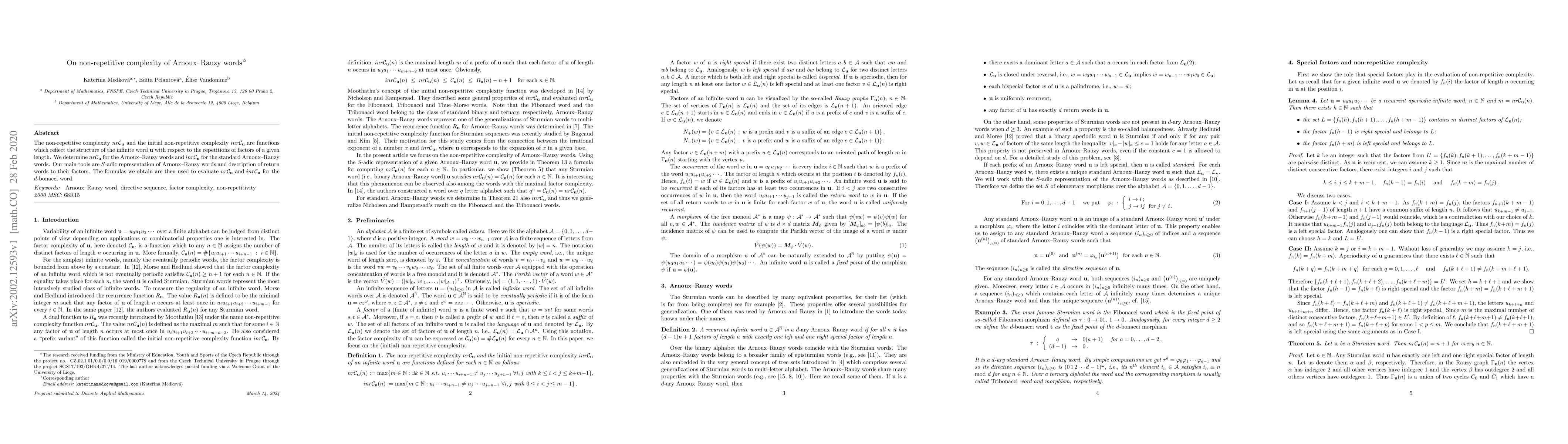The non-repetitive complexity $nr\mathcal{C}_{\bf u}$ and the initial non-repetitive complexity $inr\mathcal{C}_{\bf u}$ are functions which reflect the structure of the infinite word ${\bf u}$ with respect to the repetitions of factors of a given length. We determine $nr\mathcal{C}_{\bf u}$ for the Arnoux-Rauzy words and $inr\mathcal{C}_{\bf u}$ for the standard Arnoux-Rauzy words. Our main tools are $S$-adic representation of Arnoux-Rauzy words and description of return words to their factors. The formulas we obtain are then used to evaluate $nr\mathcal{C}_{\bf u}$ and $inr\mathcal{C}_{\bf u}$ for the $d$-bonacci word.