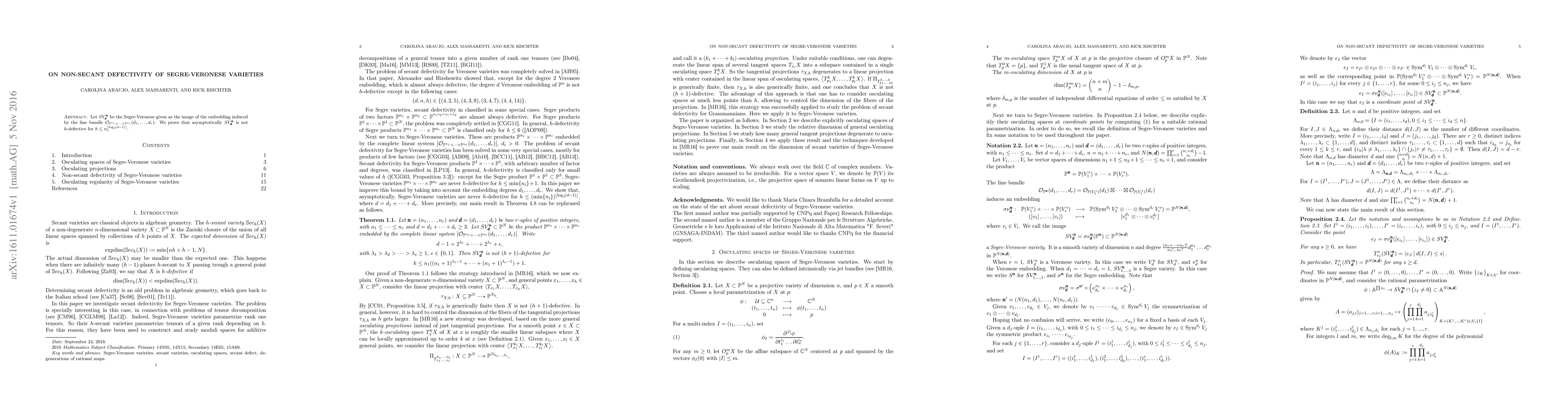 This paper proves that Segre-Veronese varieties $SV^{\pmb n}_{\pmb d}$ are asymptotically not $h$-defective when $h$ is bounded by $n_1^{\lfloor \log_2(d-1)\rfloor}$, demonstrating their non-secant defectivity.