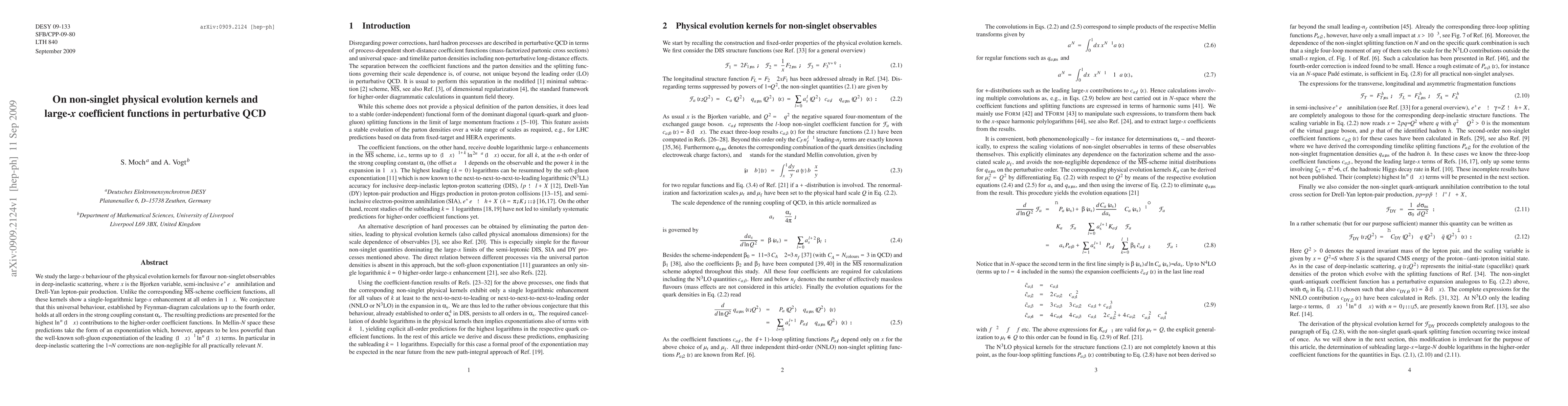 We study the large-x behaviour of the physical evolution kernels for flavour non-singlet observables in deep-inelastic scattering, where x is the Bjorken variable, semi-inclusive e^+ e^- annihilation and Drell-Yan lepton-pair production. Unlike the corresponding MSbar-scheme coefficient functions, all these kernels show a single-logarithmic large-x enhancement at all orders in 1-x. We conjecture that this universal behaviour, established by Feynman-diagram calculations up to the fourth order, holds at all orders in the strong coupling constant alpha_s. The resulting predictions are presented for the highest ln^n(1-x) contributions to the higher-order coefficient functions. In Mellin-N space these predictions take the form of an exponentiation which, however, appears to be less powerful than the well-known soft-gluon exponentiation of the leading (1-x)^(-1) ln^n(1-x) terms. In particular in deep-inelastic scattering the 1/N corrections are non-negligible for all practically relevant N.