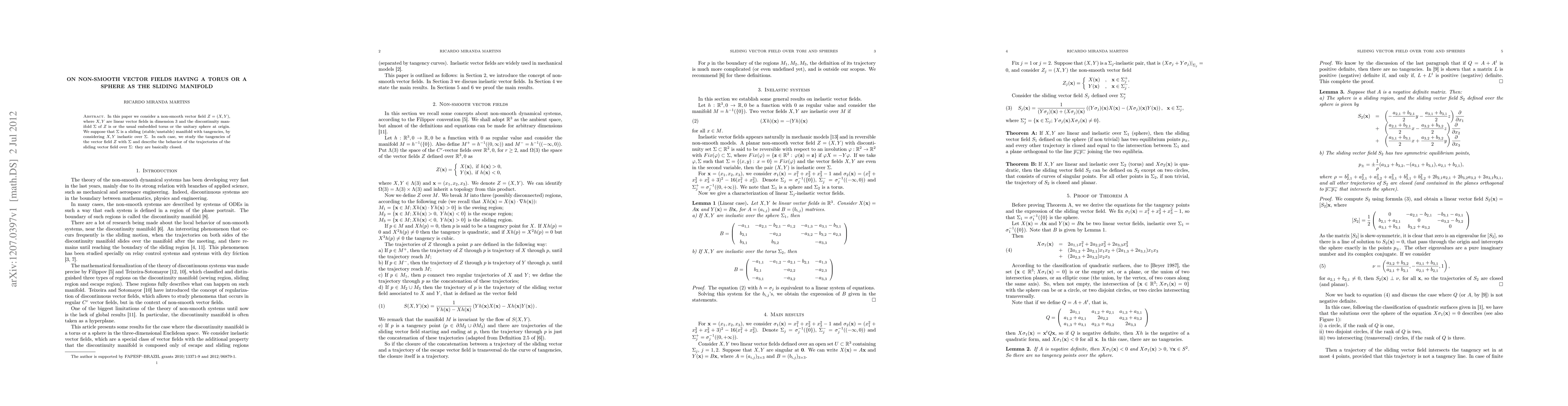 This paper investigates non-smooth vector fields $Z=(X,Y)$ in 3D where $X$ and $Y$ are linear vector fields, and the discontinuity manifold $\Sigma$ is either a torus or a sphere. It focuses on the behavior of trajectories sliding over $\Sigma$ and finds that they form closed loops.